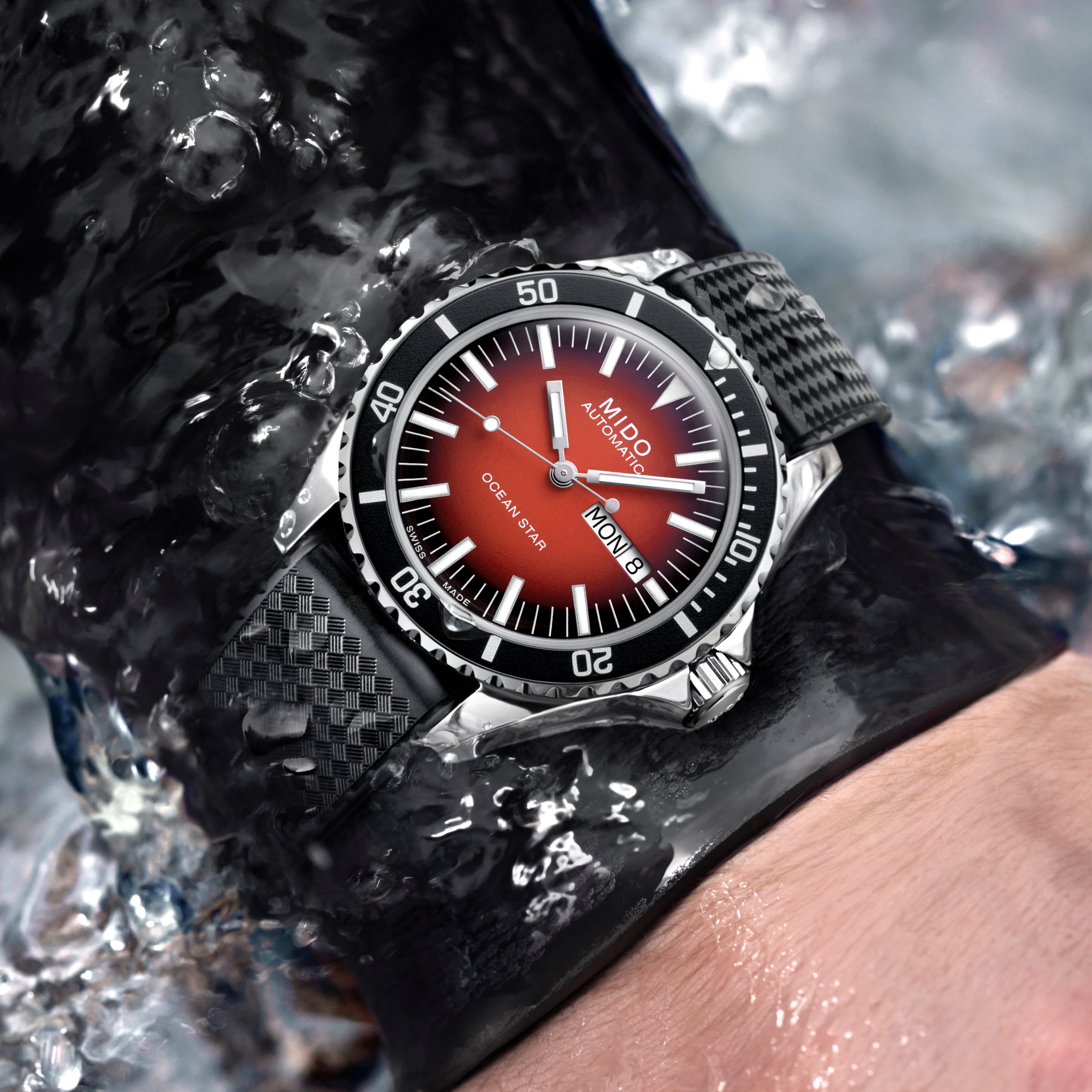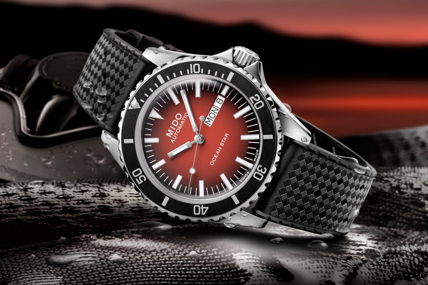 Red color is perhaps the new in-vogue trend in wristwatches. We’ve seen a number of red dial watches over the months and in fact the last watch that we introduced was TAG Heuer Carrera in striking red dial just recently. Not the one to lag behind, Mido just released a new tribute model in their Ocean Star line with a chic red-black gradient dial; given they’ve done this before. The tribute models of Mido, in fact pay homage to the vintage Mido dive watches of the past. So now, let’s take a look at what this red-black dial stunner has to offer on the specs side.