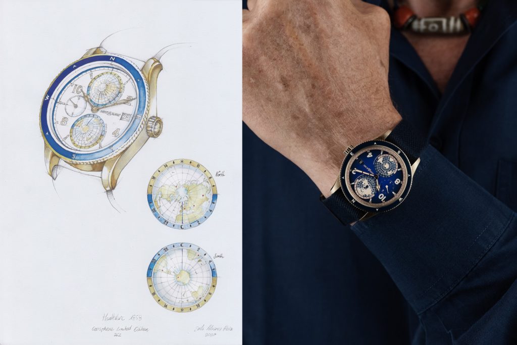 With all that under his belt, you can expect the Montblanc watch to be very navigation-themed. The blue ceramic bezel has a compass within it, and the dial features the classic Geosphere layout with the view being dominated by representations of both hemispheres. These rotate and provide a world time complication, allowing you to read the time across both hemispheres. For this edition, the hemispheres have little red dots on them in certain places, these mark out the mountains on the Seven Summits list, which comprises of the highest mountains on each of the seven continents. I’m not sure about the accuracy of this, as they appear to have marked out Mont Blanc on the Northern hemisphere, but Messner’s version of the Seven Summits includes Mt Elbrus which is also in the European continent. Perhaps it’s a subtle way of Montblanc marketing itself.