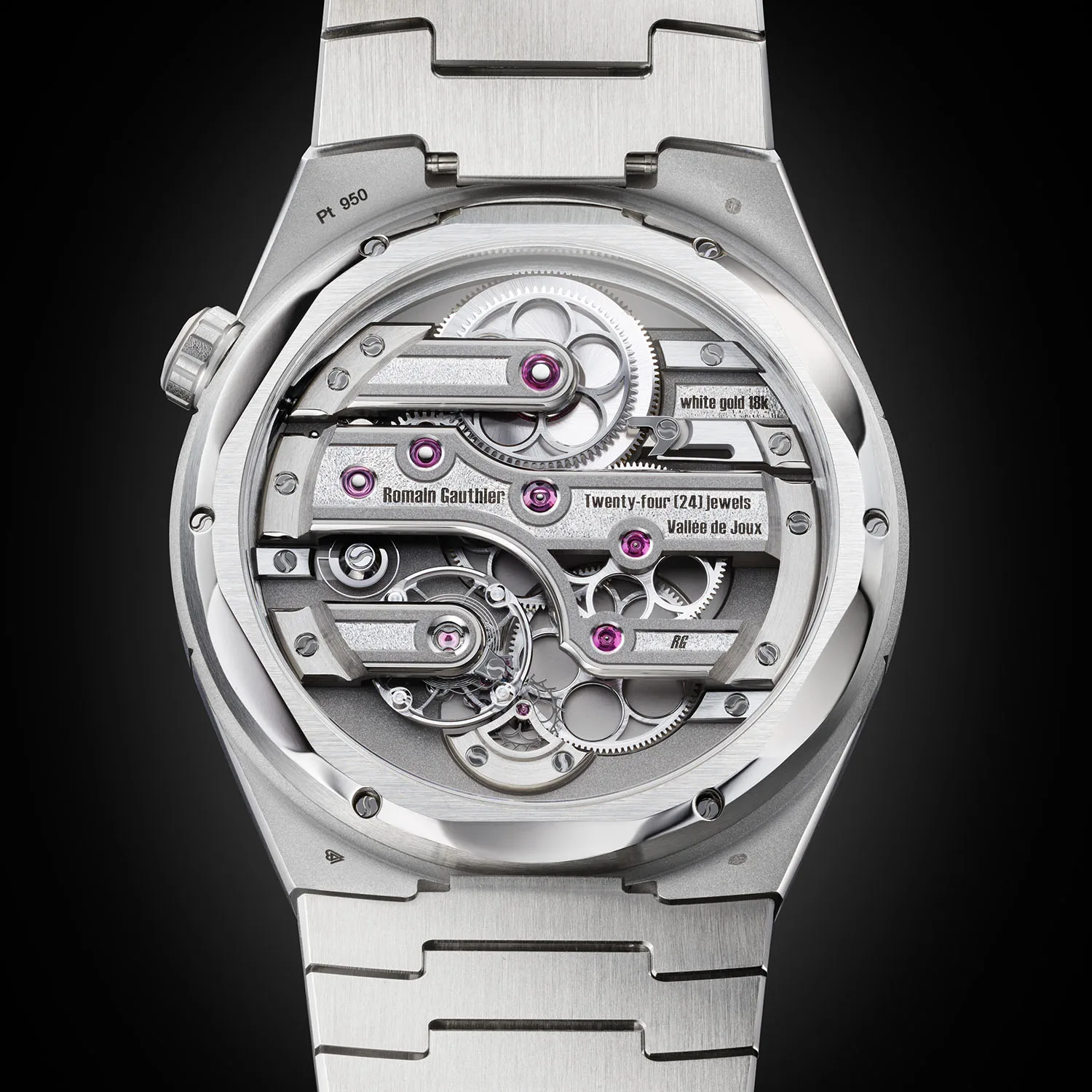 Romain Gauthier has been making some of the finest independently-made wristwatches money can buy for years. We last encountered this style of watch in the forms of the Continuum when it launched in 2021, and then we published about it again in 2022 when it became the C by Romain Gauthier. The C by Romain Gauthier collection has now been split further with the ‘Freedom’ range of watches that have a titanium case and the ‘Heritage’ line which this new watch falls into. The ‘Heritage’ models all have platinum cases, and this one also has a platinum bracelet.