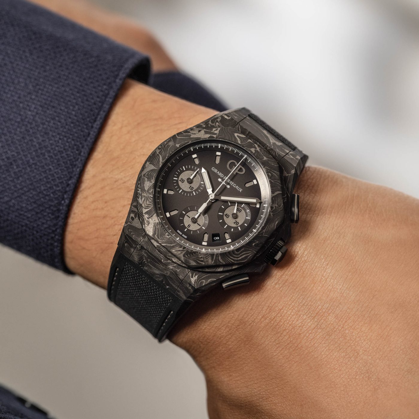 Girard Perregaux is one of the most storied watchmakers out there with a considerable repertoire of fascinating and sometimes confusing watches. The latest in this line is the Laureato Absolute Chronograph 8Tech. The Laureato Absolute is like Audemars Piguet’s Royal Oak Offshore or Hublot’s Big Bang, it’s a larger and more aggressive version of an existing sporty/dressy watch which turns the sport factor up to eleven. The Laureato’s reception has been mixed from what I’ve seen and heard in forums, but new special editions indicate the apparent success of (and Girard Perregaux’s confidence in) the watch.