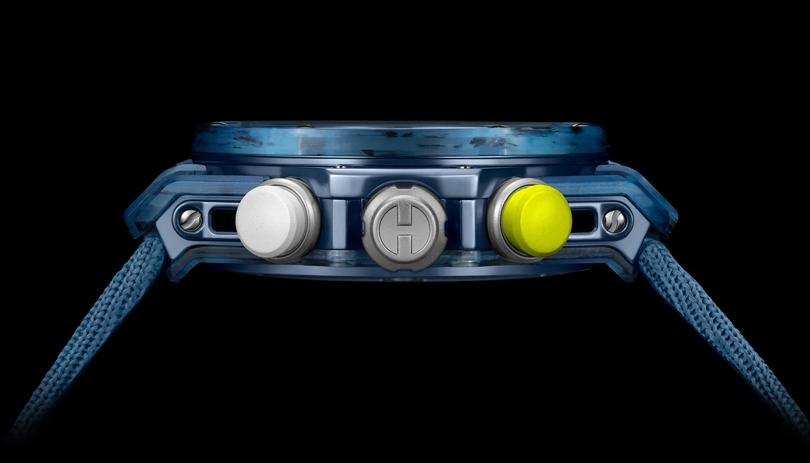 Hublot also provides a range of straps with the watch. The watch is at its lightest with the lightweight elastic strap attached, but it also comes with a fabric strap with velcro and an aluminium buckle, a white rubber strap with a titanium clasp and a Lacoste strap. These can be easily swapped out thanks to Hublot’s One Click strap-changing system.