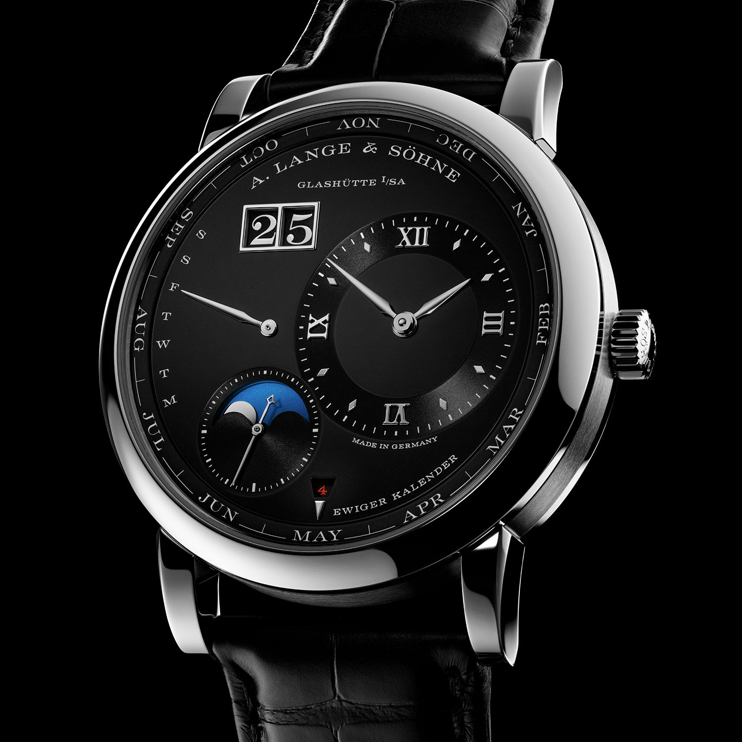 Although it’s been around for centuries, the making of a perpetual calendar watch is still tricky business, especially if you want it to be accurate for a long time. A. Lange & Söhne’s moon phases are renowned for being accurate for over 100 years, assuming the watch is running.