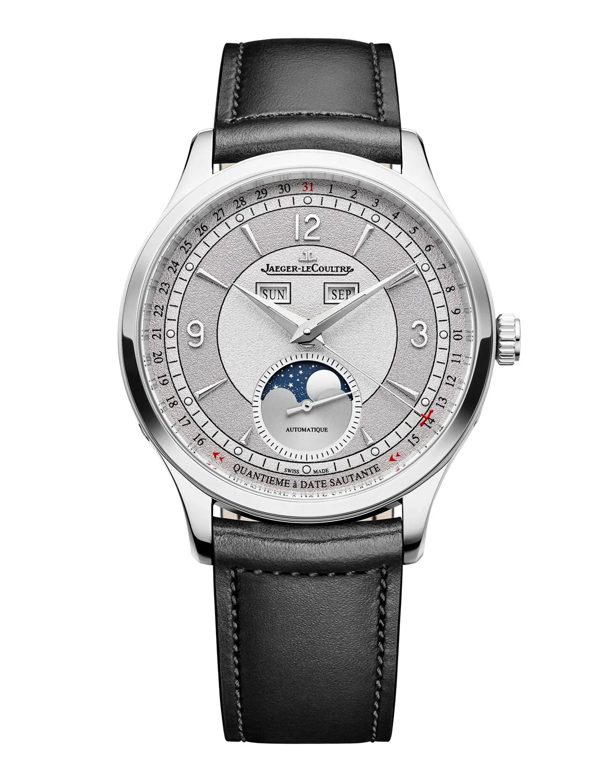 The new version of the Master Control Calendar was undoubtedly hotly anticipated, it’s been a staple of the brand’s lineup for ages. It brings with it a grained dial with two different shades of grey as well as a classical set of indications in the form of the date around the dial’s periphery, the day and month windows and the moonphase at 6 O’clock within the small seconds dial. Interestingly, the date hand performs a jump on this watch, from 15 to 16 and passes over the “QUANTIEME à DATE SAUTANTE” text. The applied numerals and dauphine hands are classy, and applications of SuperLumiNova mean this watch is functional both day and night.