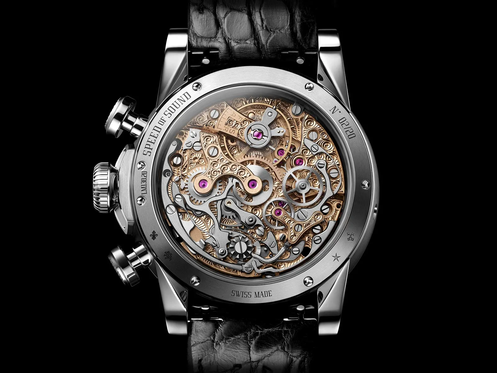 Given that Louis Moinet is a low-volume maker of wristwatches and that its supply of moon rocks and old movements isn’t infinite (and also this is their 20th anniversary piece), the new Speed of Sound model is limited to just 20 examples and retails for CHF50,000.