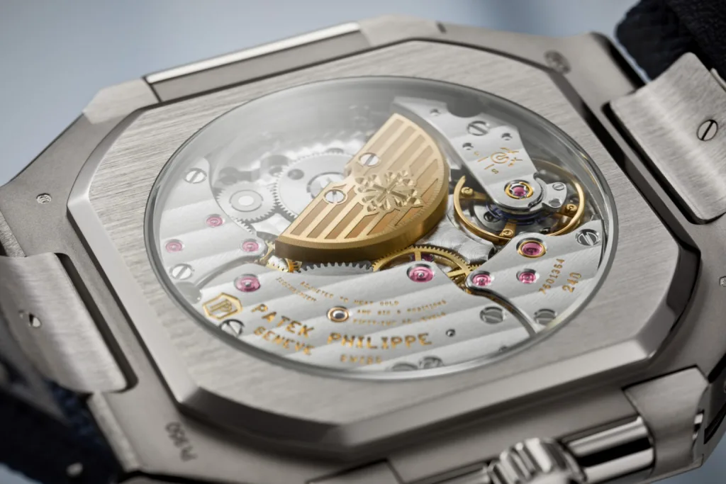 You get the familiar Nautilus-style bracelet in steel or steel-gold, fabric strap for the platinum model. Prices start at $41,243 for steel, with availability from October 18, 2024.