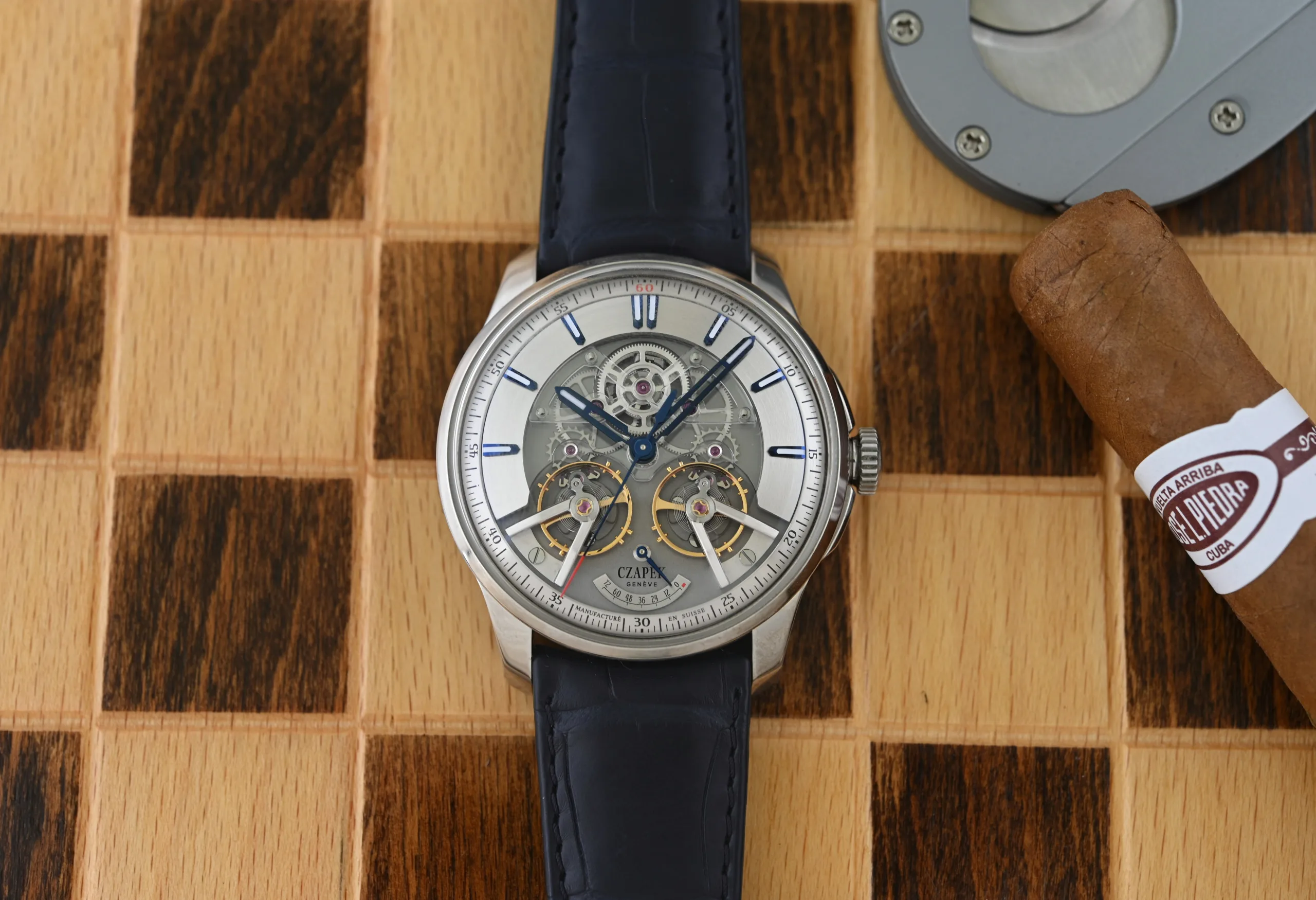 The Calibre 8 is the movement which is mostly on display on the front of this piece. A quick peek around the back of the watch will reveal an engraving which says “A Friendship Story”, this is because this movement was developed by Czapek & Cie and acclaimed watchmaker Bernhard Lederer. Lederer’s own watches often display his skills in developing refined escapement assemblies for his watches, and it seems he’s done the same here.