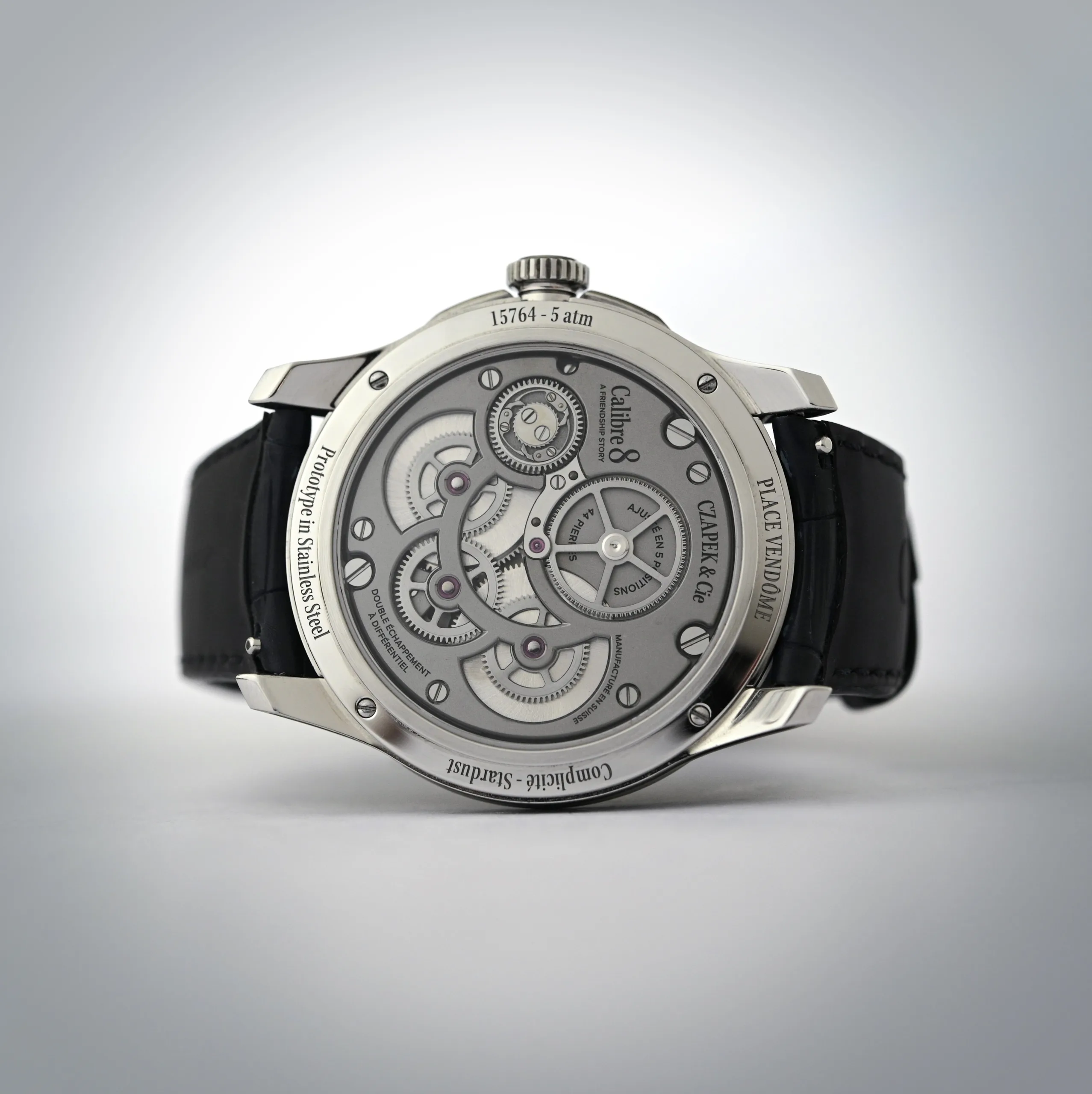 The Calibre 8 is the movement which is mostly on display on the front of this piece. A quick peek around the back of the watch will reveal an engraving which says “A Friendship Story”, this is because this movement was developed by Czapek & Cie and acclaimed watchmaker Bernhard Lederer. Lederer’s own watches often display his skills in developing refined escapement assemblies for his watches, and it seems he’s done the same here.
