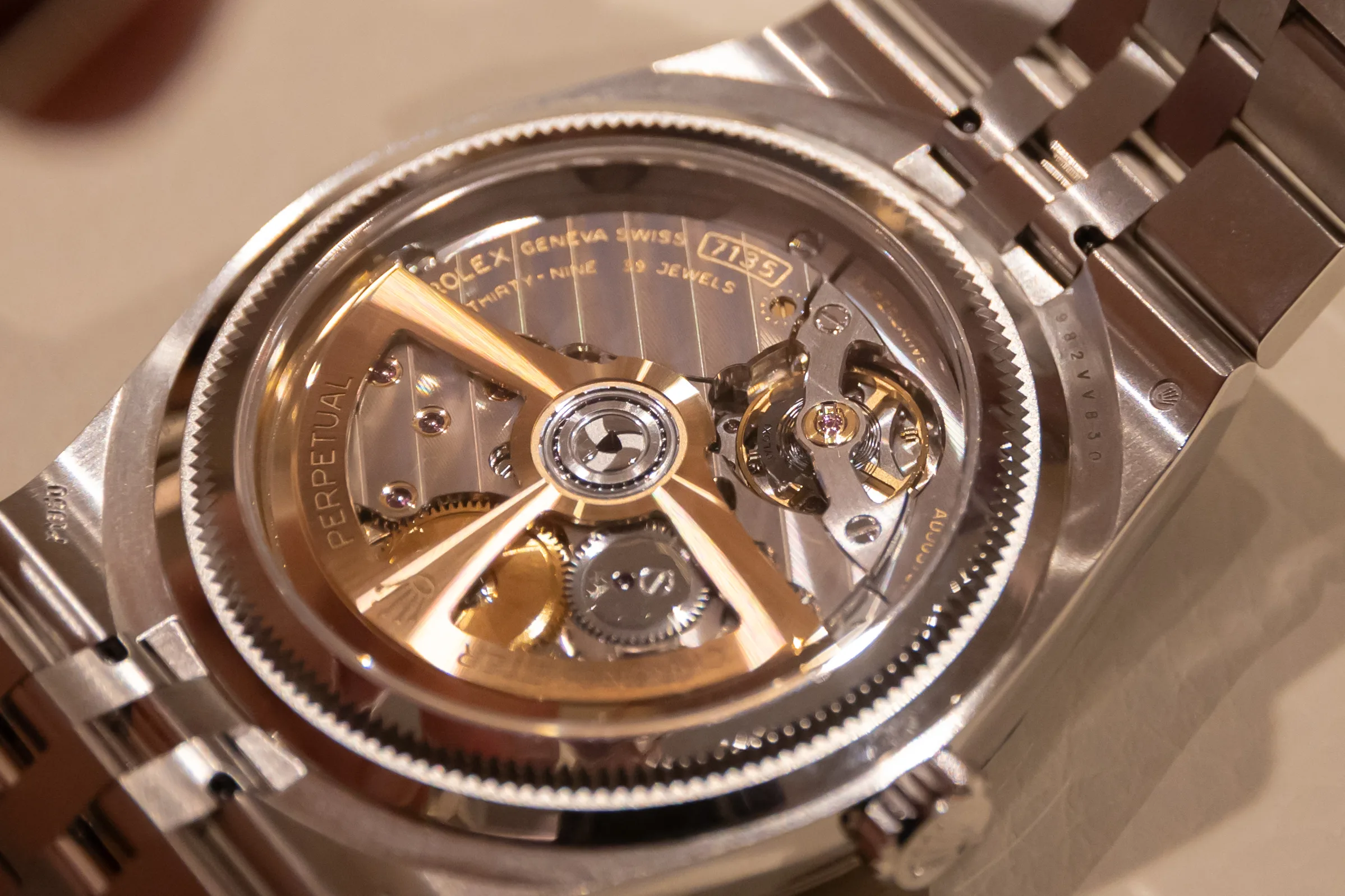 Rolex has decided to go all-out with this new model in every sense. The appearance causes conversation but the movement is also worth some discussion. It’s on display in all models which allows a neat view into the brand-new calibre 7135. The 7135 is made in-house by Rolex, of course, and offers Superlative Chronometer accuracy (+/- 2 seconds per day) for 66 hours.