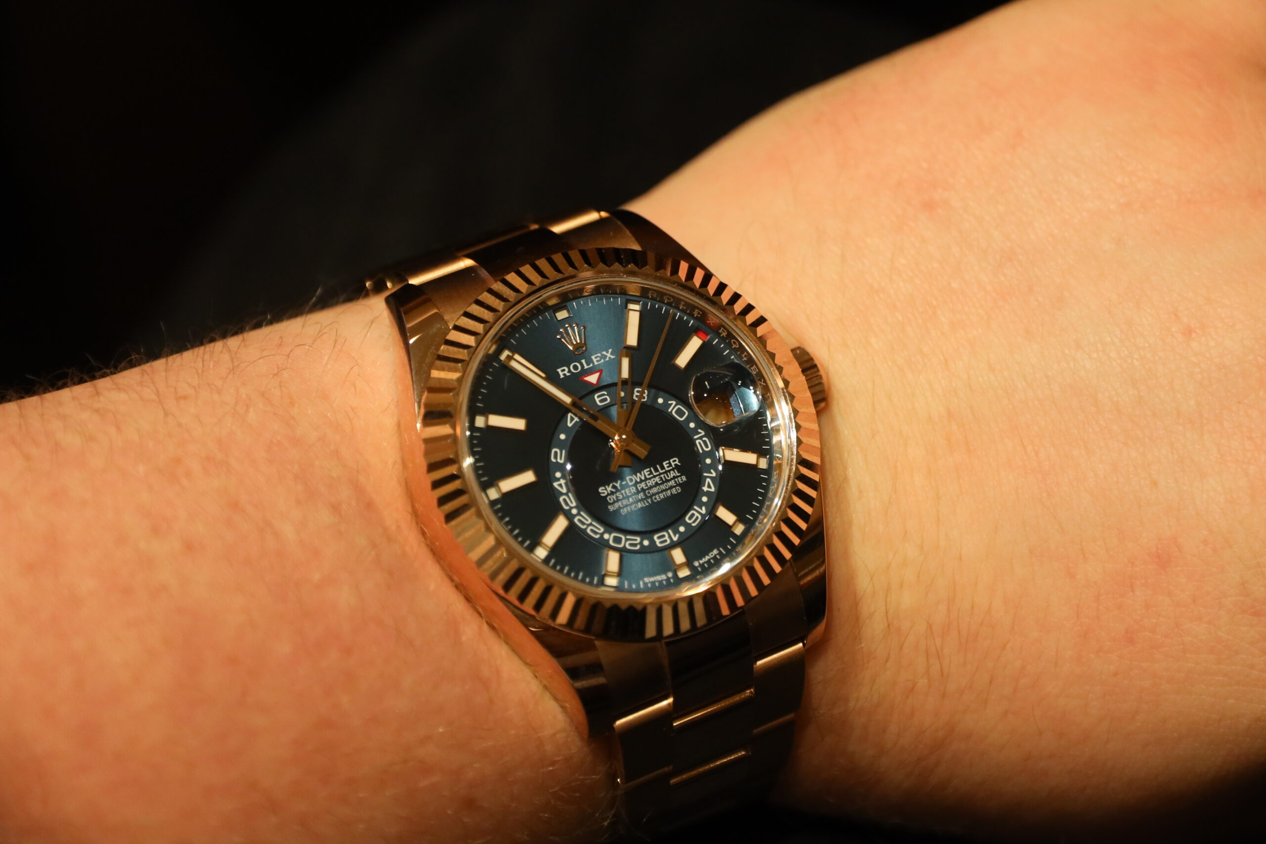 The Oyster Perpetual Sky-Dweller has received a makeover with the introduction of aesthetic and technical enhancements. The watch, aimed at frequent travelers, displays the time in two time zones simultaneously and comes equipped with an annual Saros calendar. The Calibre 9002 with Superlative Chronometer certification allows the Sky-Dweller to display the date, month, and an additional 24-hour time zone, while the instantaneous date change is linked to the local time.