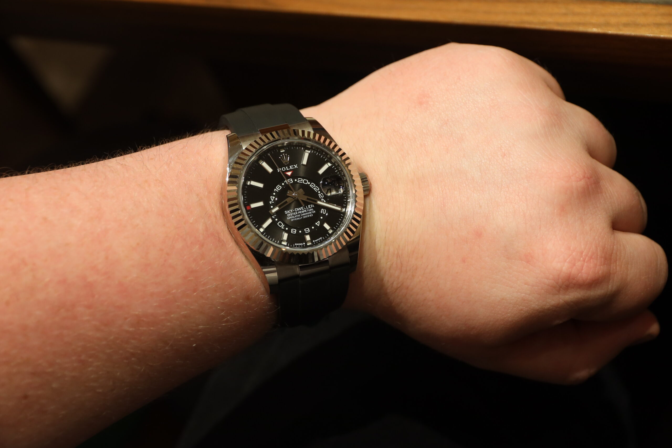 The watch is available with an Oyster bracelet or an Oysterflex bracelet, the latter being the first time the combination of precious metal and elastomer has been used.