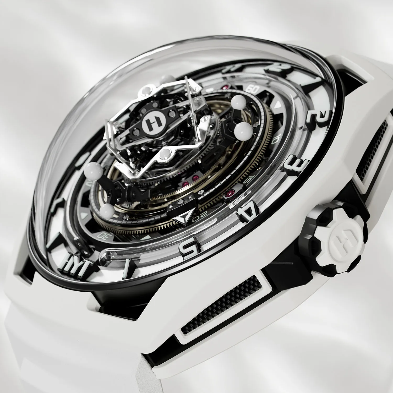 Another reason this watch is unconventional, that is to say impractical, is its size. Fitting all of that in is tricky, and so the case measures a whopping 48.00mm x 52.30mm x 25.15mm. It is made of titanium and white ceramic-coated titanium with blackened titanium inserts. But it’s still not an everyday piece. It’s also pricey at CHF335,000 before taxes and limited to just eight examples worldwide. I also expect they’ve sold out by now, and if that is the case, then I apologise as I’ve completely wasted your time.