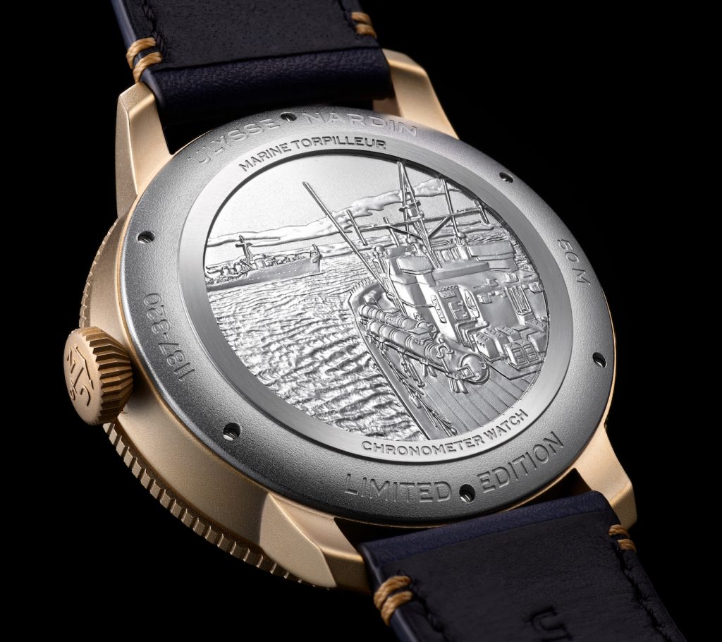 There are two case options available stainless steel and bronze. The case measures 44mm wide which is certainly on the larger side but what it also implies is that the case would offer tons of wrist presence. Sitting on top is a sapphire crystal which is held in place with a rather thin bezel. The case back is closed and has been deeply stamped with a torpedo boat motif. The case is water resistant to only 50 meters which I feel is a tad on the lower side for a modern rugged watch like this.