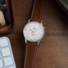 The Ryder Cup is a golfing competition played between teams from Europe and the USA; it’s played every other year and alternates between American and European courses. Omega sponsors a lot of sporting events, most notably the Olympic games, and is also the sponsor for the PGA Tour of America, and it’s the watch chosen by the US team. Through trade deals, Omega also sponsors the Ryder Cup, which this year starts off at the Albatros Course of Le Golf National in France. The colours of this Seamaster reflect those of the Ryder Cup: the white dial makes it quite an elegant piece, the hands are blue along with the strap, and seconds hand, applied Omega logo and strap end links are solid 18K yellow gold. There’s also a 24K gold applied rendering of the Ryder Cup logo on the caseback, something which is understandable that I’m not a fan of all the same.