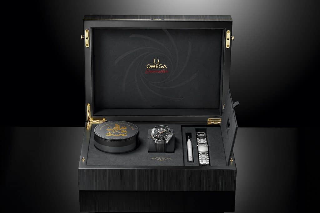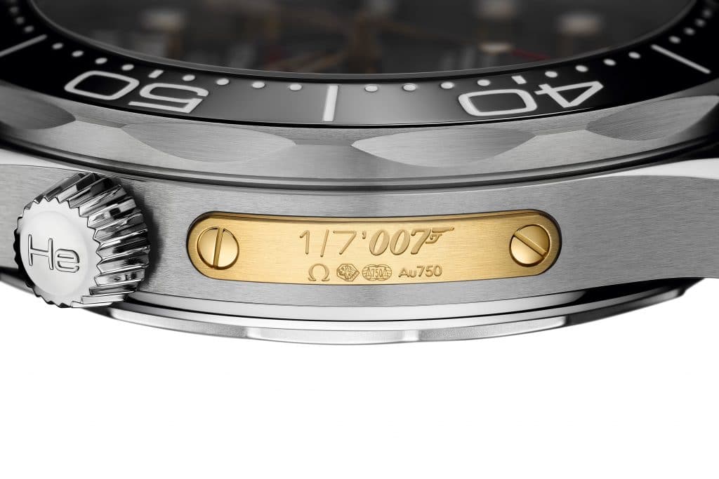 The side of the watch features an 18K gold plaque, featuring the hallmarks of the gold used and the Omega logo. It also shows you which number out of the ‘limited edition’ 7007 watches you have. How limited edition that actually is I’ll leave to you to debate. The back of the watch is the part that frustrates me the most. When Omega relaunched the Diver 300 line they introduced an open caseback which is nothing new for them, in fact, it brought it into line with the rest of their watches. But, this invites them to do what I think is a shortcut which is to print stuff on the back crystal, which they’ve done here. Covering the movement is a colourful print of the Bond family crest. I’d have liked to see a closed caseback with the crest engraved, that would be a signature touch to end on.