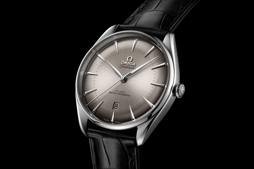 The dial itself has been given a lacquered sunburst finish with a domed shape, note there is no pie-pan styling like you’d find on the Globemaster, or indeed the vintage Seamaster. The hands are thin ahd shapely, so too are the markers. There’s a small and subtle track for the minute indicators, and the date has been placed at 6 O’clock, but coloured in the same tone as the dial, so it doesn’t stand out.