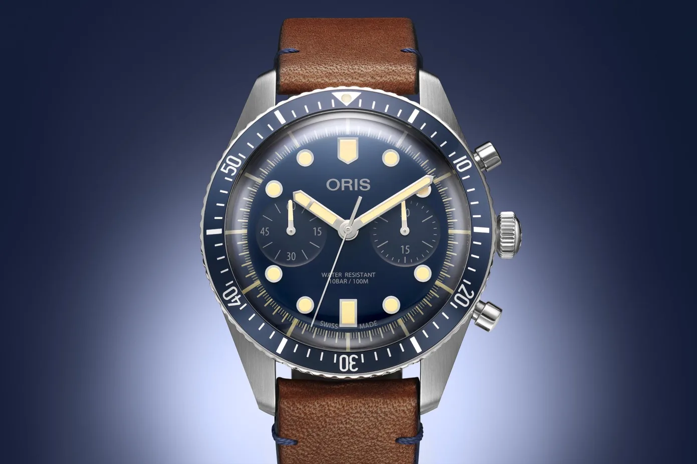 The case on the Oris divers Sixty-Five Bucherer blue edition is made from stainless steel and is decently sized for a modern chronograph coming in at a diameter of 43mm. It has been well finished with a mix of brushed and polished surfaces. A heavily domed sapphire crystal sits on top of the case, which has been a signature design element of the diver’s sixty-five collection and pays a tribute to the plexiglass crystals on divers from the past. Flipping the case over you have a closed case back with a deeply embossed Oris logo and the “Bucherer Blue Editions” text highlighting the collaboration behind the watch.