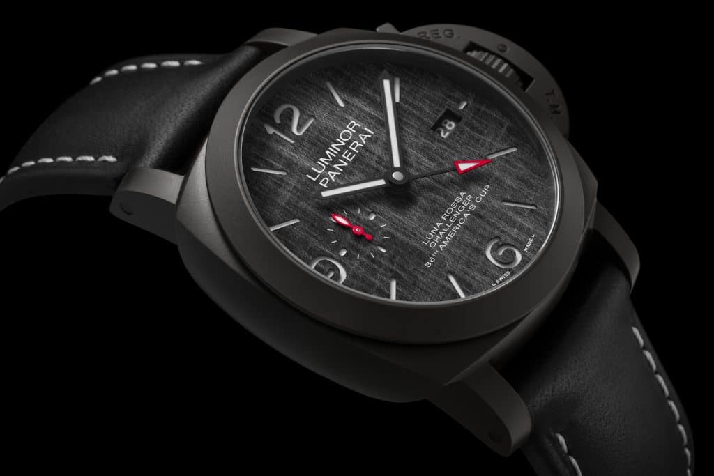 Following from reference PAM01039, the Submersible we saw at SIHH, the new Luna Rossa watches had to keep the same design elements. The most notable of these is the dial, which is made of sailcloth rather than pure metal. Usually, sailcloth is reserved for the strap on watches like these, so seeing it become a part of the watch itself is quite exciting.