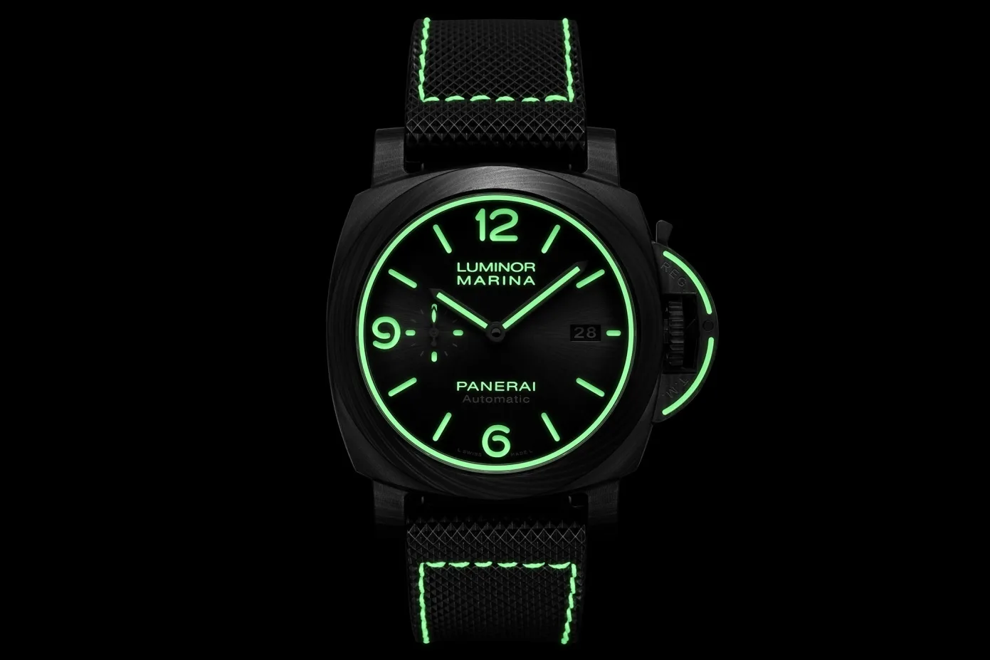 All three watches come with a copious amount of lume added to them. “More than necessary” is a good description, but I wouldn’t say “too much” in this case as they haven’t slathered the dials completely in luminous paint. As well as on the hands and markers, where you’d expect the watches to have some lume, there’s also now a ring of it around the inner flange of the watch, on the crown guard and the strap as well. That last one isn’t technically luminous paint, but rather luminous fibres stitched into the strap—all the same.