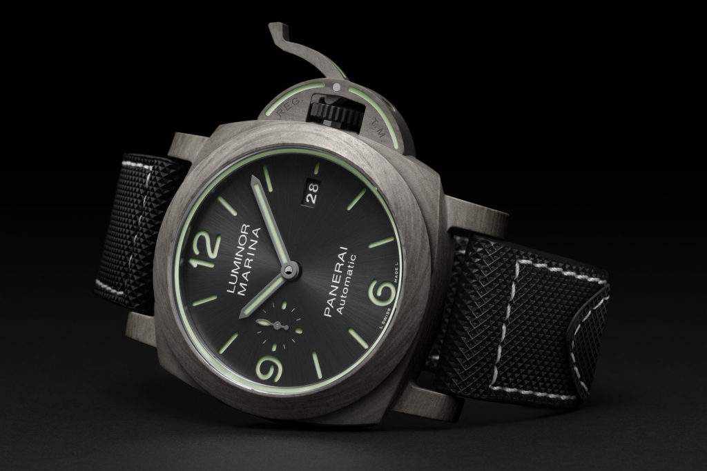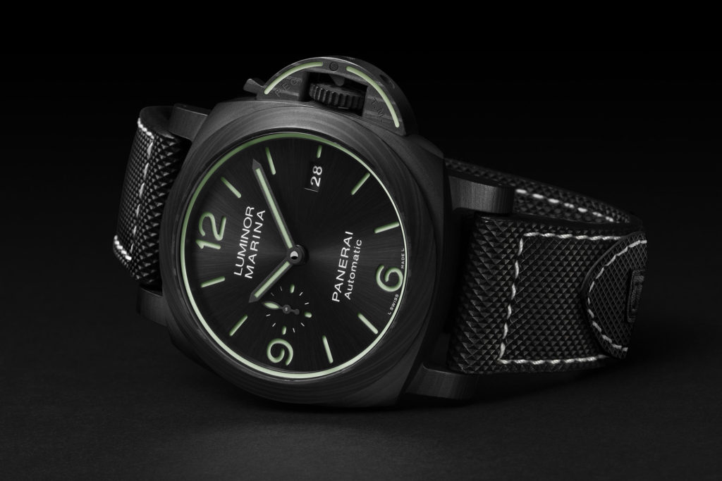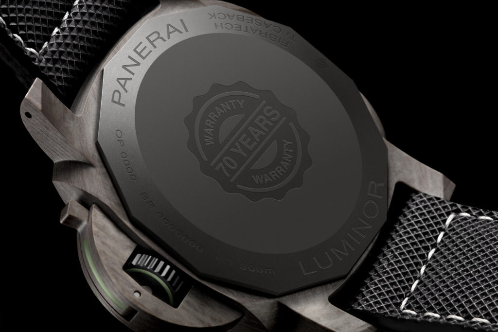PAM1118 uses a material we’re all familiar with: Carbotech. This is Panerai’s signature material that uses layers of paper-thin carbon fibre, special resin and high heat and pressure to form the layers of carbon into a single piece. Each one has a unique pattern on it, due to the slightly randomised nature of production. The PAM1118 also receives a black dial and strap, instead of the blue seen on the PAM1117. The price for this model is €16,000.