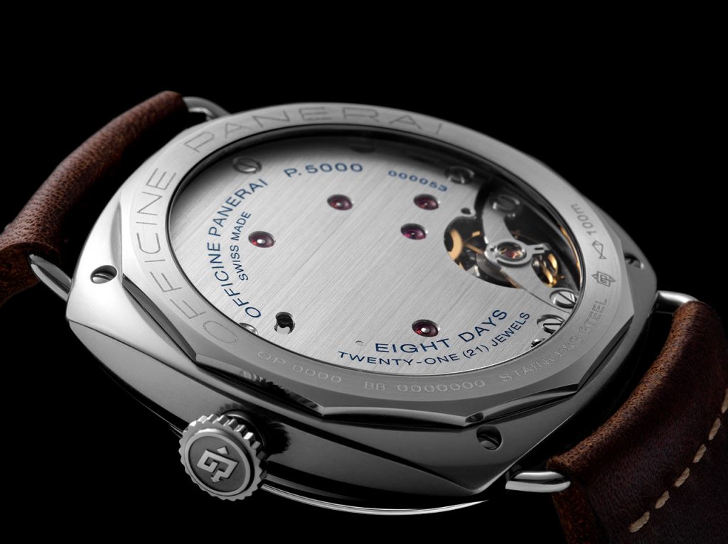 Driving the PAM00992 is Panerai’s in-house caliber P.5000. This is a hand-wound movement that operates at a frequency of 3Hz and offers an autonomy of 8 days through two barrels. The movement comprises 21 jewels and features a nice industrial finish.