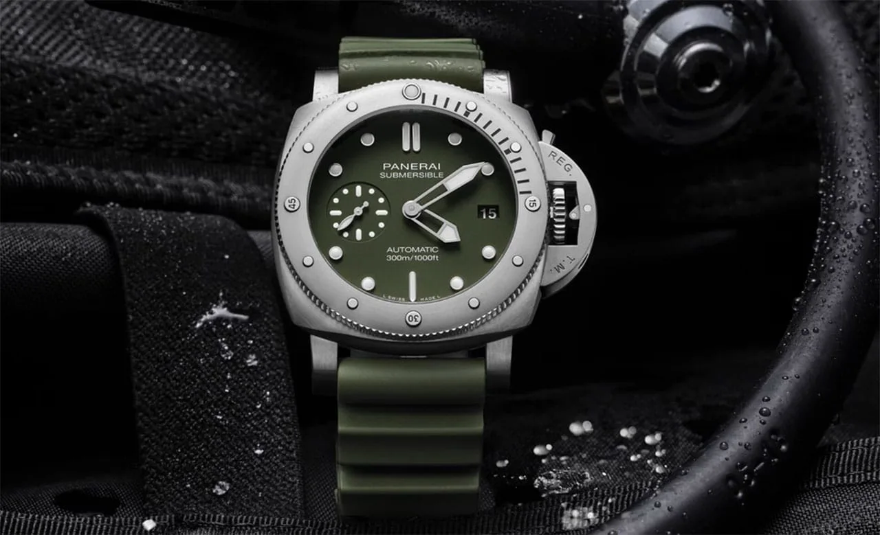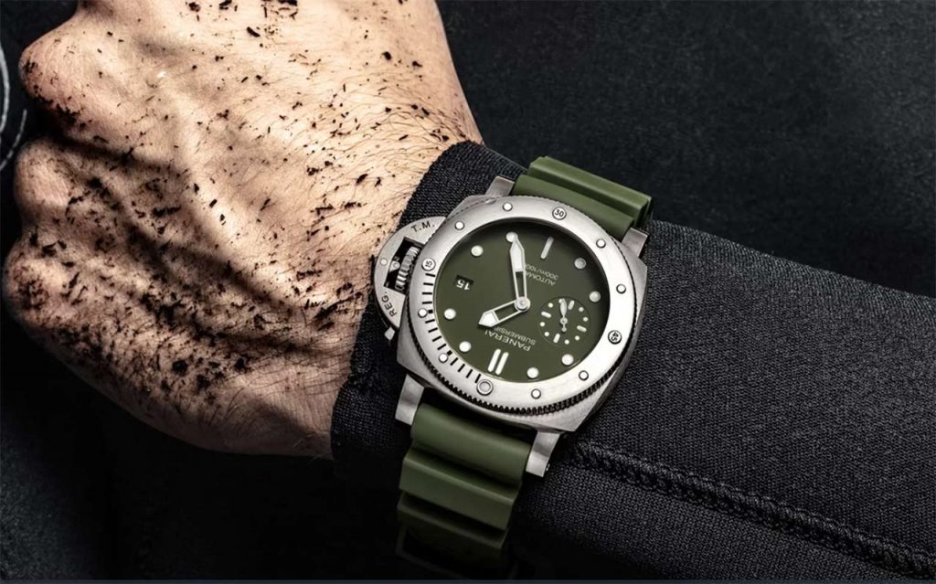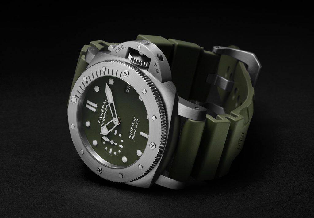 Over the last eleven months, one of the most active brands has been Panerai, which has had a heavy focus on its Submersible range of watches that we first got to see back in January at SIHH. Since then, a whole slew of new Submersibles seems to have materialised out of thin air, and now another one is joining them. The new Submersible Verde Militaire 42mm PAM1055 might have a bit of a mouthful of a name, but it’s undeniably a good looking watch.Â
