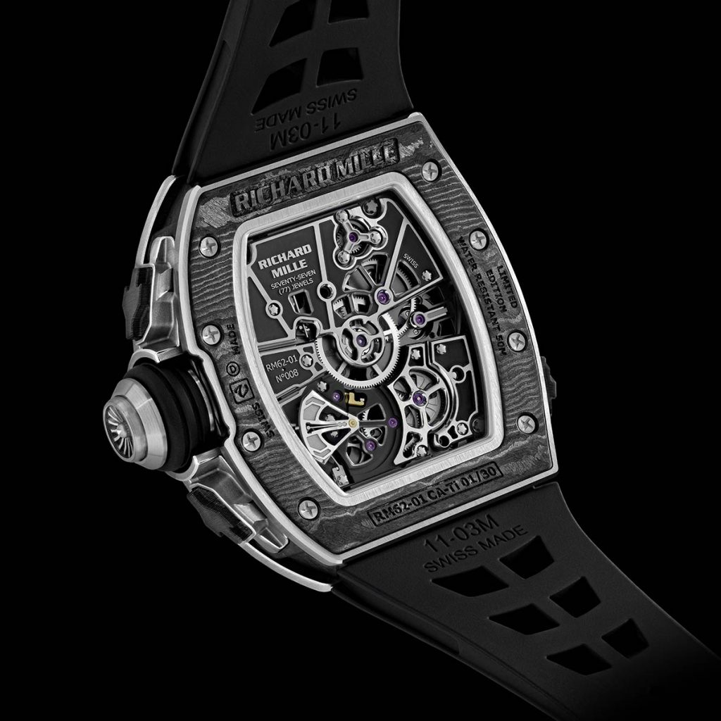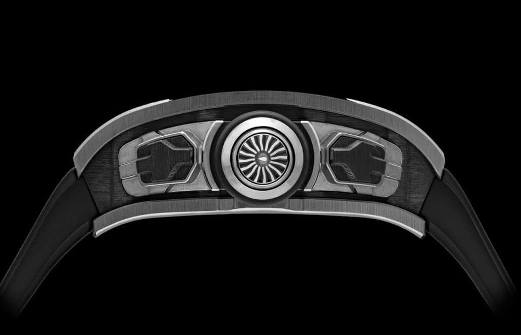 Earlier I mentioned how this watch was a first for Richard Mille and watchmaking. Now, you might be thinking that I mean the alarm is a first because it most definitely isn’t. What I meant was that this alarm, in particular, is a first. It’s the first-ever silent alarm. Instead of using a chiming system to alert everyone in the room of something audibly, this watch can give the wearer a discreet ahem and a gentle nudge, without alerting people nearby. On the back of the watch sits a small oscillating weight, except this movement isn’t automatic, it’s manually wound with a 70-hour power reserve.Â