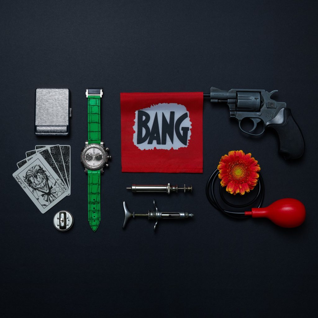 Each Joker dial is also hand-painted inspired by the Joker’s face resulting to a finish that is intricately airbrushed to evoke the make-up of the villain, we see two black eyes sit at the center of the dial that fades to white at the edges to reflect the Joker’s striking skin tones. Notably, the ARRAW hands on the watch are designed with playing card ‘Aces’ at their tips while the chronograph’s second hand is finished in Joker Purple with a stylised ‘J’ at its base.