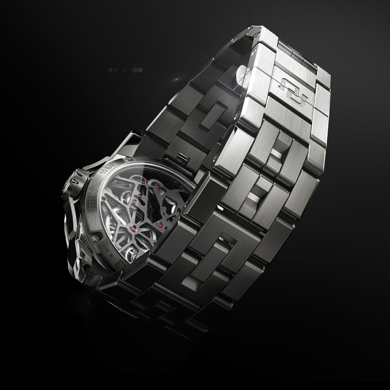 The titanium bracelet has a triple-folding buckle. It is equipped with a quick-release system, and the central lug that appears on other Excalibur MB cases is now echoed on the titanium bracelet links. The watch retails for EUR 71,000 (incl. taxes) / USD 66,500 (excl. taxes) and is the first all-titanium version in the Excalibur Monobalancier collection.