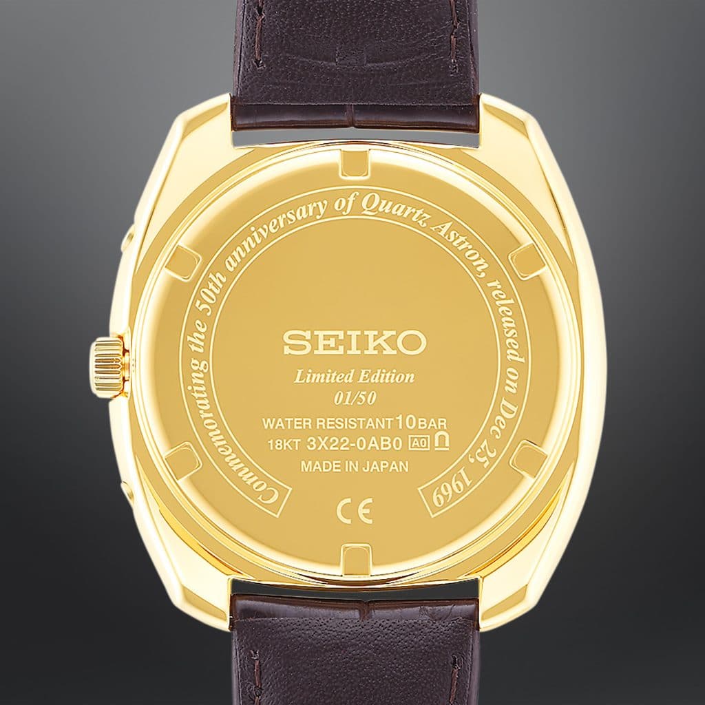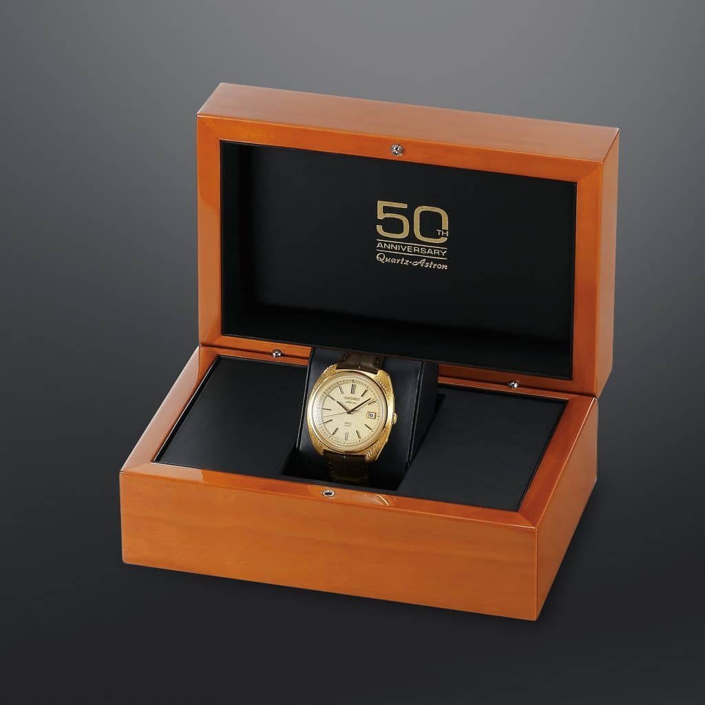 It seems fitting, then, that they re-release their original watch, the watch that set the benchmark for it all. The new 1969 Quartz Astron 50th Anniversary Limited Edition watch is not exactly the same as the original Quartz Astron 35 SQ, but it is still a good looking watch. The 18k yellow gold case is 40.9mm x 12.8mm in diameter with the distinctive pattern that more or less comes from the original. The crown is still relatively small, but it’s not tucked inline with the case side like on the Quartz Astron 35 SQ watch, it’s still pretty elegant.