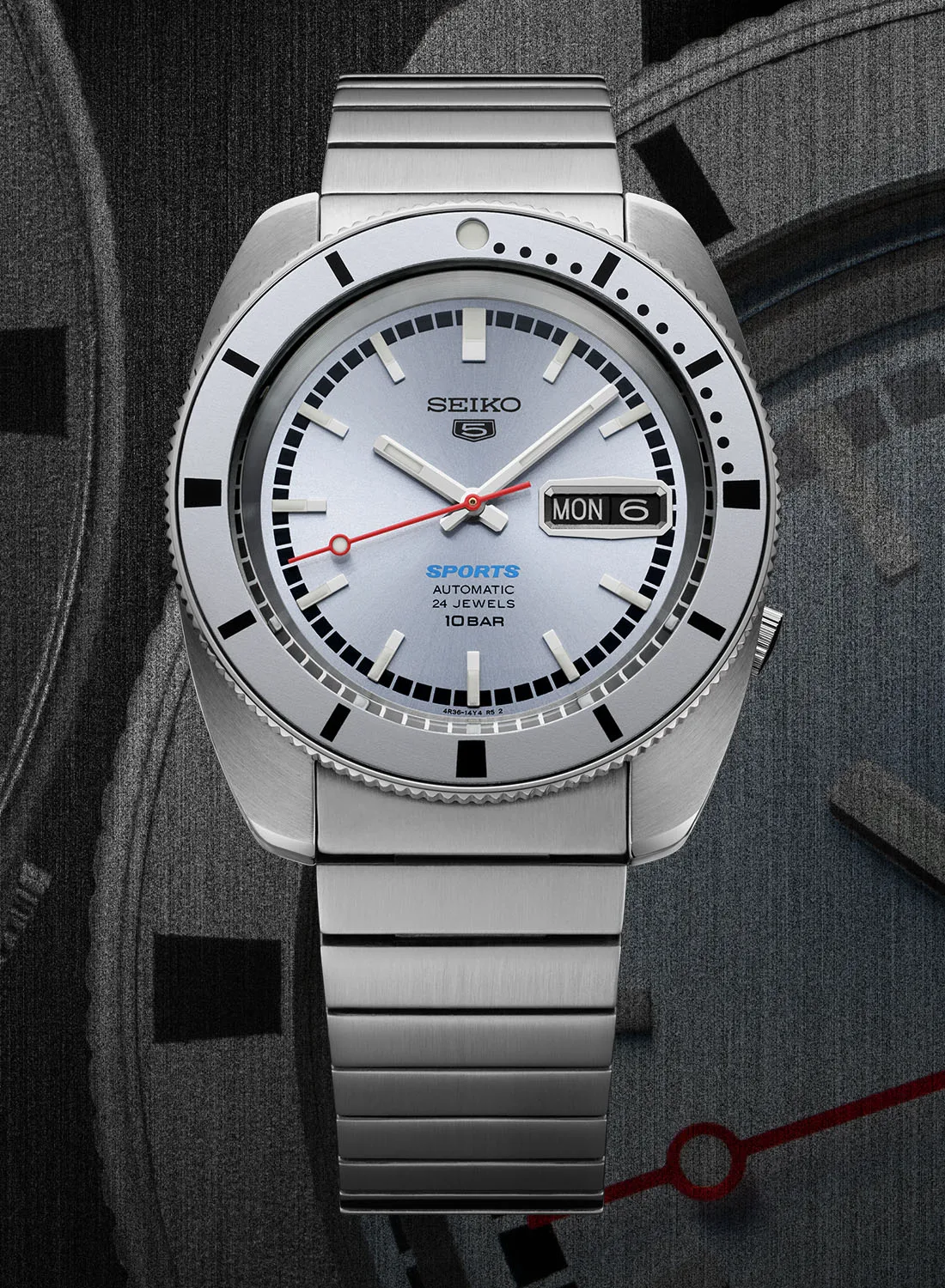 The new watches remain faithful to the original design, featuring a 38.5mm stainless steel case, short 44.8mm lug-to-lug measurement, recessed 4 o’clock crown, Hardlex mineral glass, and rotating bezel with metallic insert. They also offer improved water-resistance up to 100 meters, compared to the original’s 70 meters.