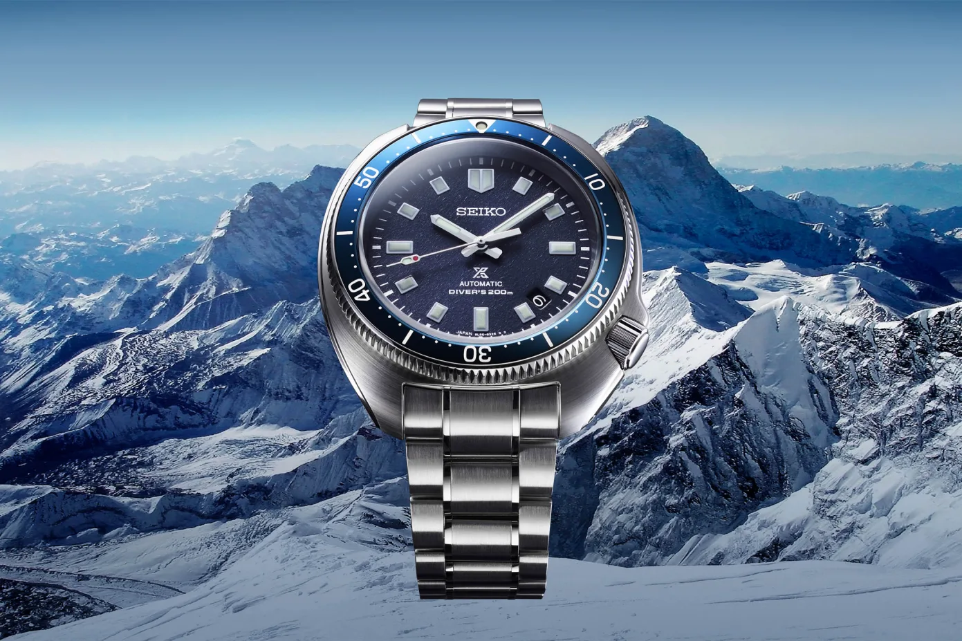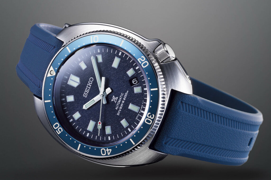 The dials like the case stick to the good old vintage recipe for the most part, but also come with a few noteworthy updates. Presented in blue and gray, the biggest change on the front of these new watches is the texture on the surface that is inspired by the mountainous terrain that Uemura loved. In addition to this, to make the dial more symmetrical, the date window has now been neatly tucked away between the markers at 4 and 5. Apart from this, the layout looks quite familiar. You still get chunky applied lume filled hour markers, a white printed minute track, baton-style hour and minute hands, and the peculiar second’s hand with a hint of red.