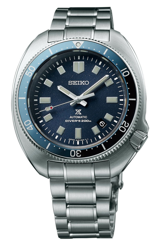 Like the SLA033, the new SLA049J1 and SLA051J1 inherit the design DNA of their vintage inspiration but are modern in their execution. Crafted from stainless steel the case measures a large 44mm in diameter and, like the original 6105, bears an intriguing lug less design to make the watch sit comfortably on a wide variety of wrists. The asymmetrical case design gives the watch a distinctive look and helps protect the screw-down crown at 4. Sitting on top of the case is a uni-directional dive time bezel, which still features an aluminum insert (blue or black) that is slightly shinier compared to the insert on the original. Other modern upgrades include better overall finishing, the use of a domed scratch-resistant sapphire crystal instead of acrylic, and higher water-resistance of 200 meters compared to the 150 meters of the original 6105.