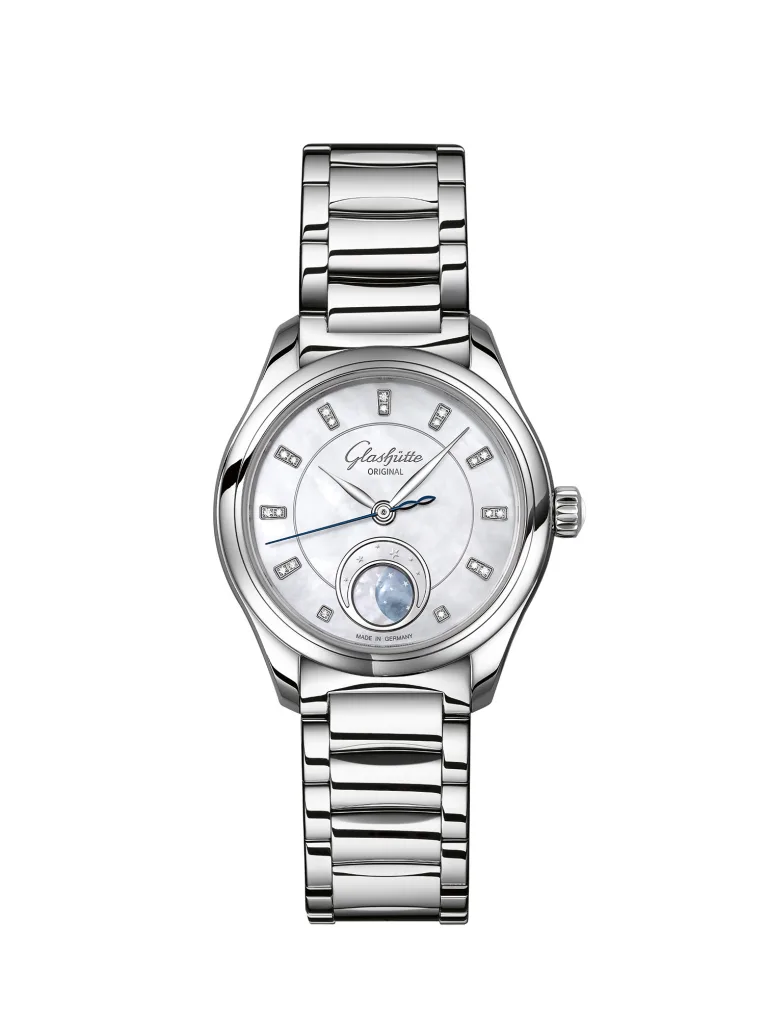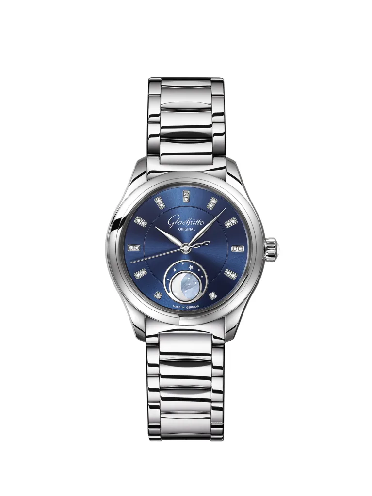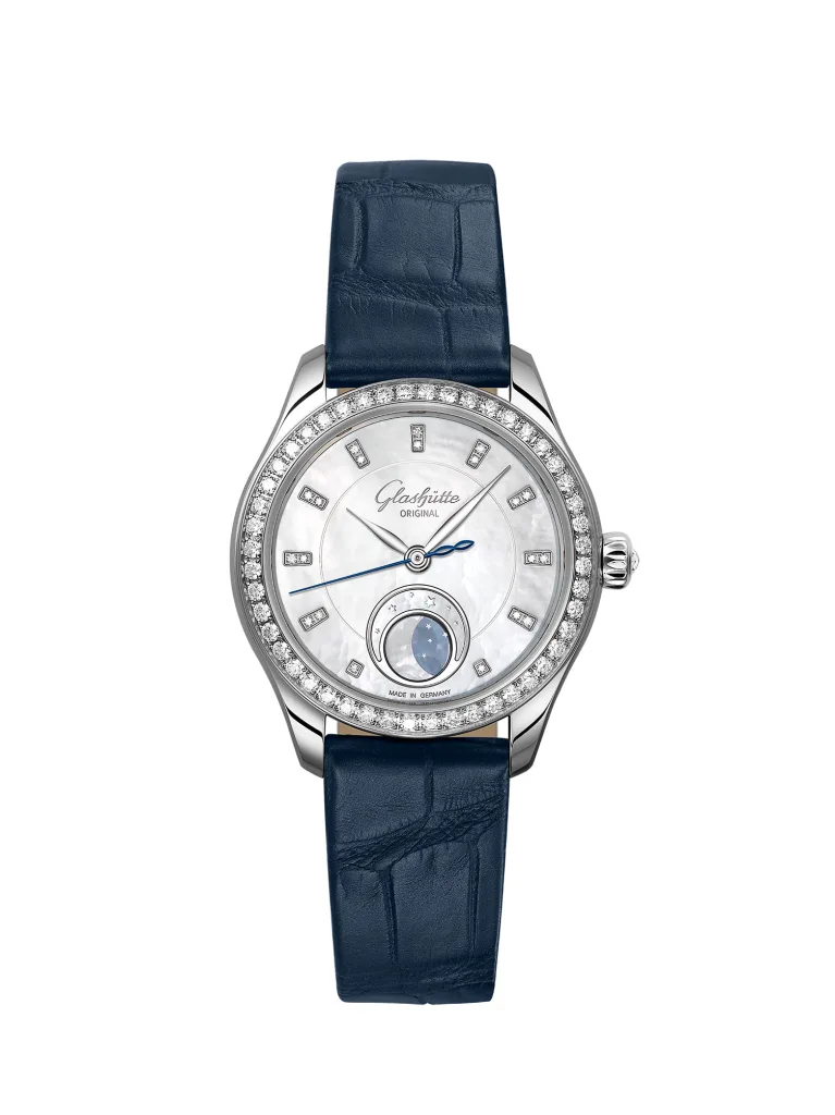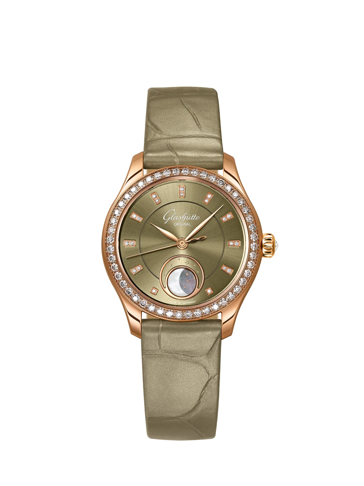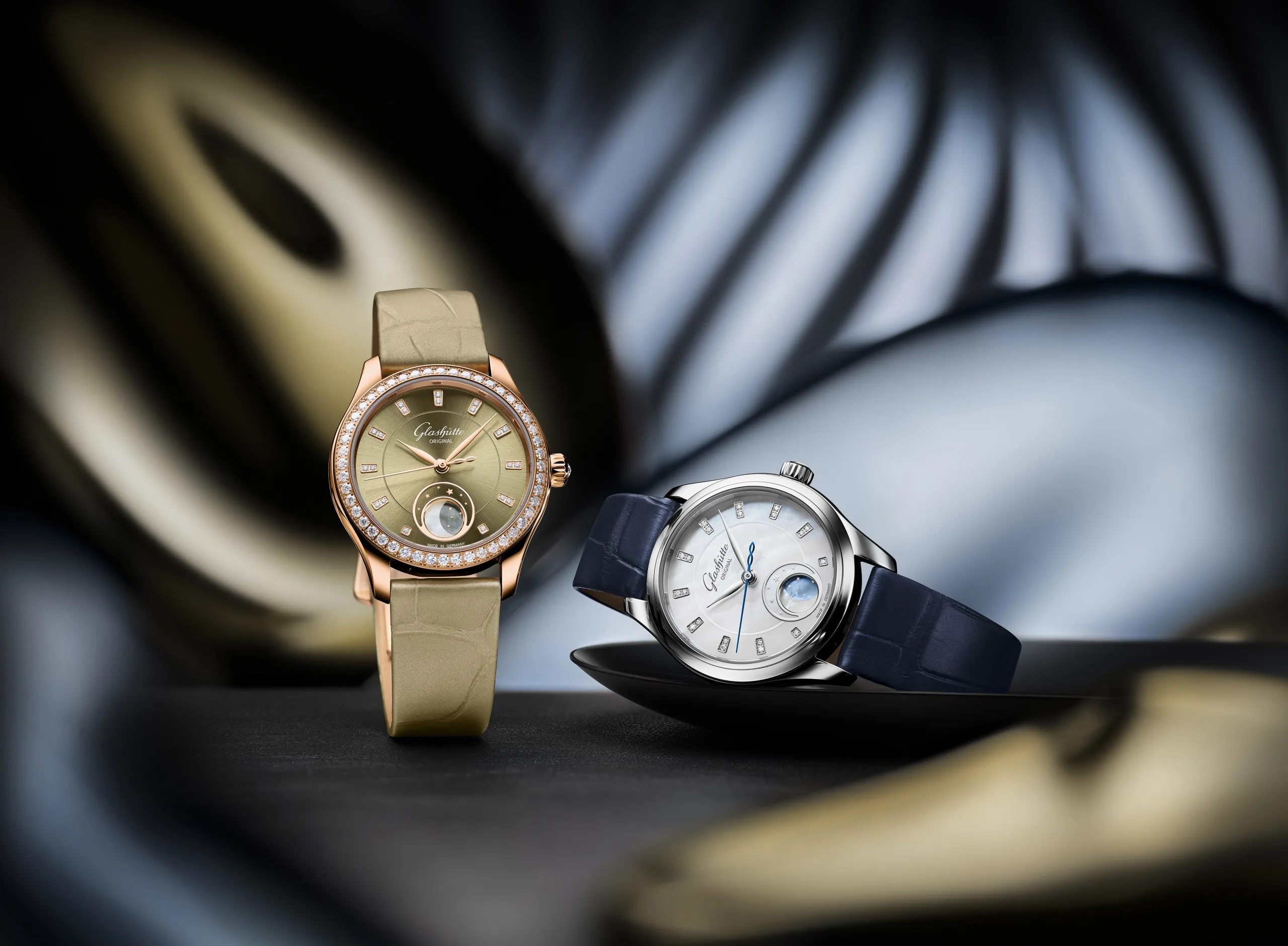 The Serenade Luna comes with a variety of strap options to suit your style. The stainless steel models can be paired with a sleek stainless steel bracelet or a sophisticated blue alligator leather strap. The red gold model features a luxurious green alligator leather strap that perfectly complements the golden-green dial. All straps are interchangeable, allowing for effortless customization. Prices for the Serenade Luna collection begin at EUR 10,900 for the stainless steel model with a blue dial and leather strap. The diamond-set models and the red gold version naturally command a higher price tag, reaching up to EUR 23,900. The Serenade Luna collection is now available for purchase at authorized Glashütte Original retailers worldwide.