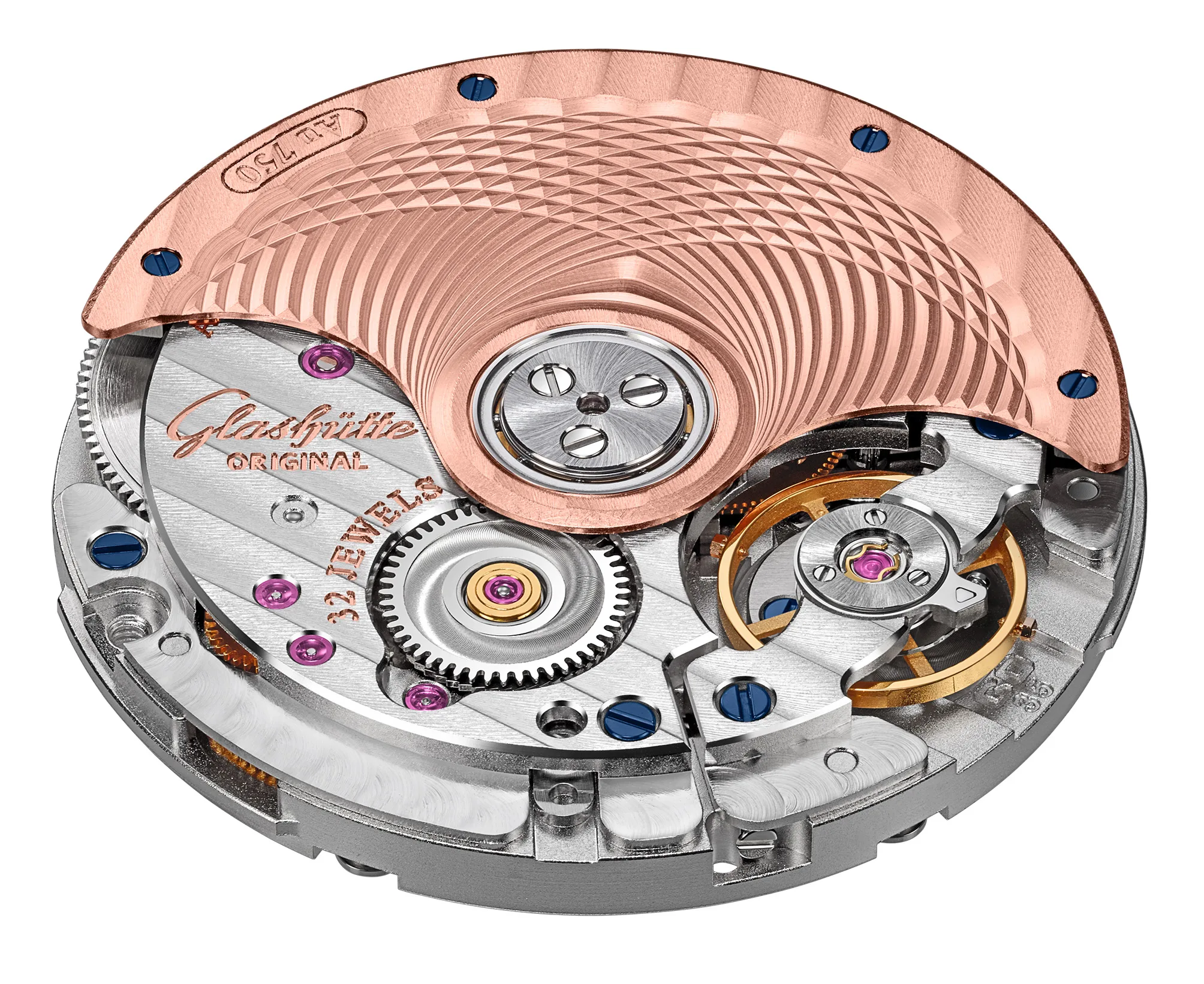 Ticking below the refined exterior is the in-house designed Caliber 35-14 automatic movement. This impressive feat of engineering is expertly crafted to fit within the watch’s slender case, measuring a mere 3.8mm in thickness. Developed with everyday wear in mind, the Caliber 35-14 boasts a user-friendly design and robust construction. With 60-hour power reserve, the movement offers reliability, ensuring that the watch continues to run smoothly even after being taken off the wrist for an extended period. The movement incorporates a silicon hairspring, making it resistant to magnetic fields and temperature fluctuations, guaranteeing optimal accuracy. Visible through the transparent caseback, the rotor is a sight to behold. Crafted from solid red gold in the red gold model, it features a beautiful seashell pattern guilloché, revealing the signature three-quarter plate and other traditional Glashütte Original finishes.