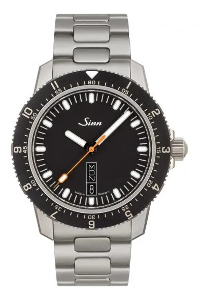 The simpler of the two, this new watch offers a day and date complication over and above regular time-keeping. And this time around, Sinn has decided to stack the day and date vertically at 6, which in my opinion is slightly quirky, but also makes it stand out from the crowd. The second’s hand has been painted orange and the bezel on top has a dual scale layout for better readability of time. Ticking inside this watch is the Sellita SW200-1 automatic calibre that operates at 4 Hz and offers a power reserve of 38 hours. The movement can be viewed through the sapphire case back and offers some nice decoration that includes blued a screed and a gold-tone rotor. The watch can be purchased on leather or silicone for $1,560 and the bracelet for $1,840.