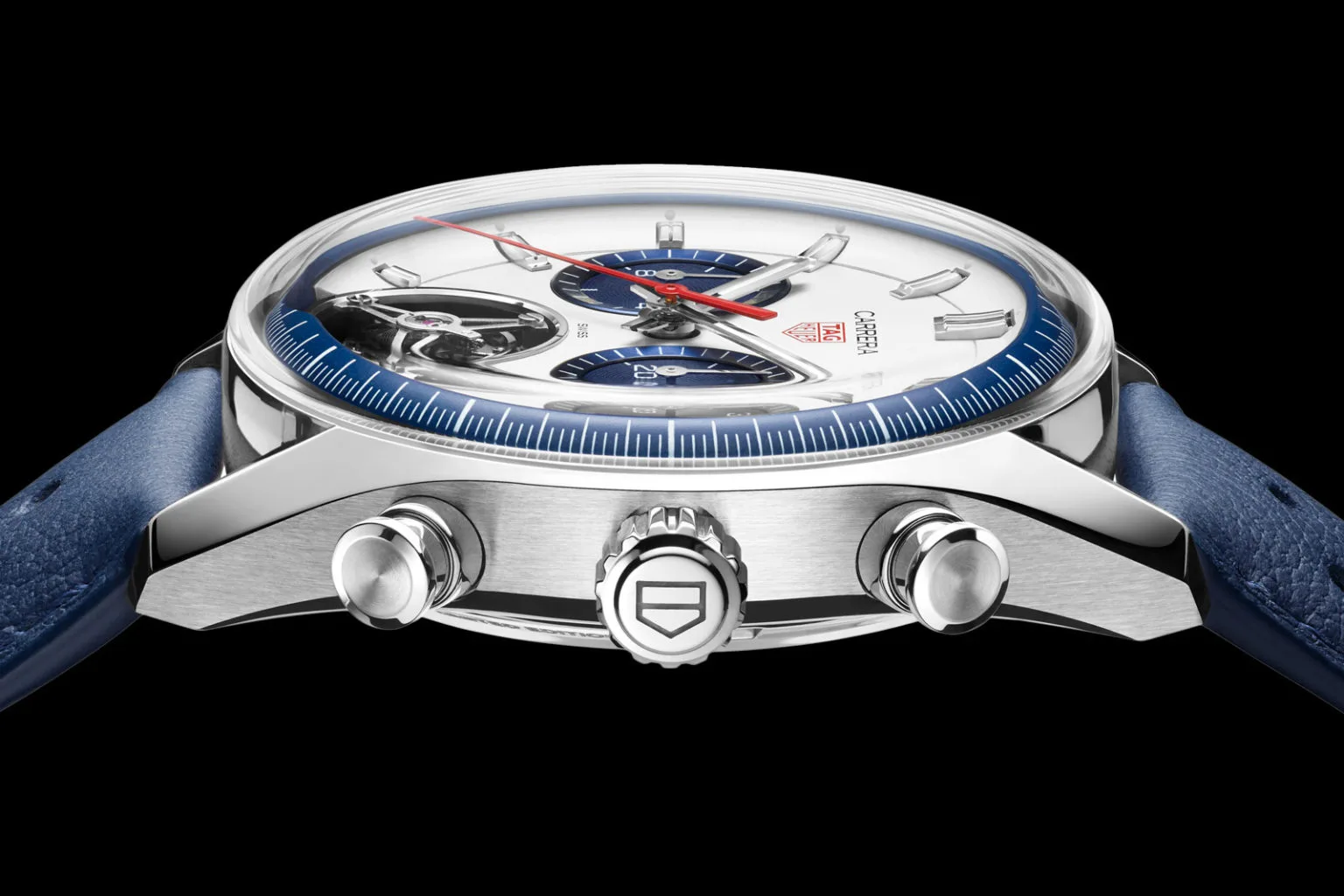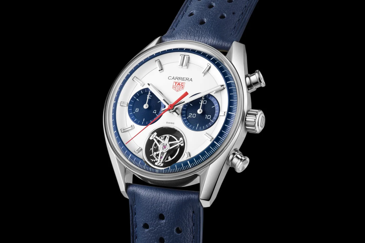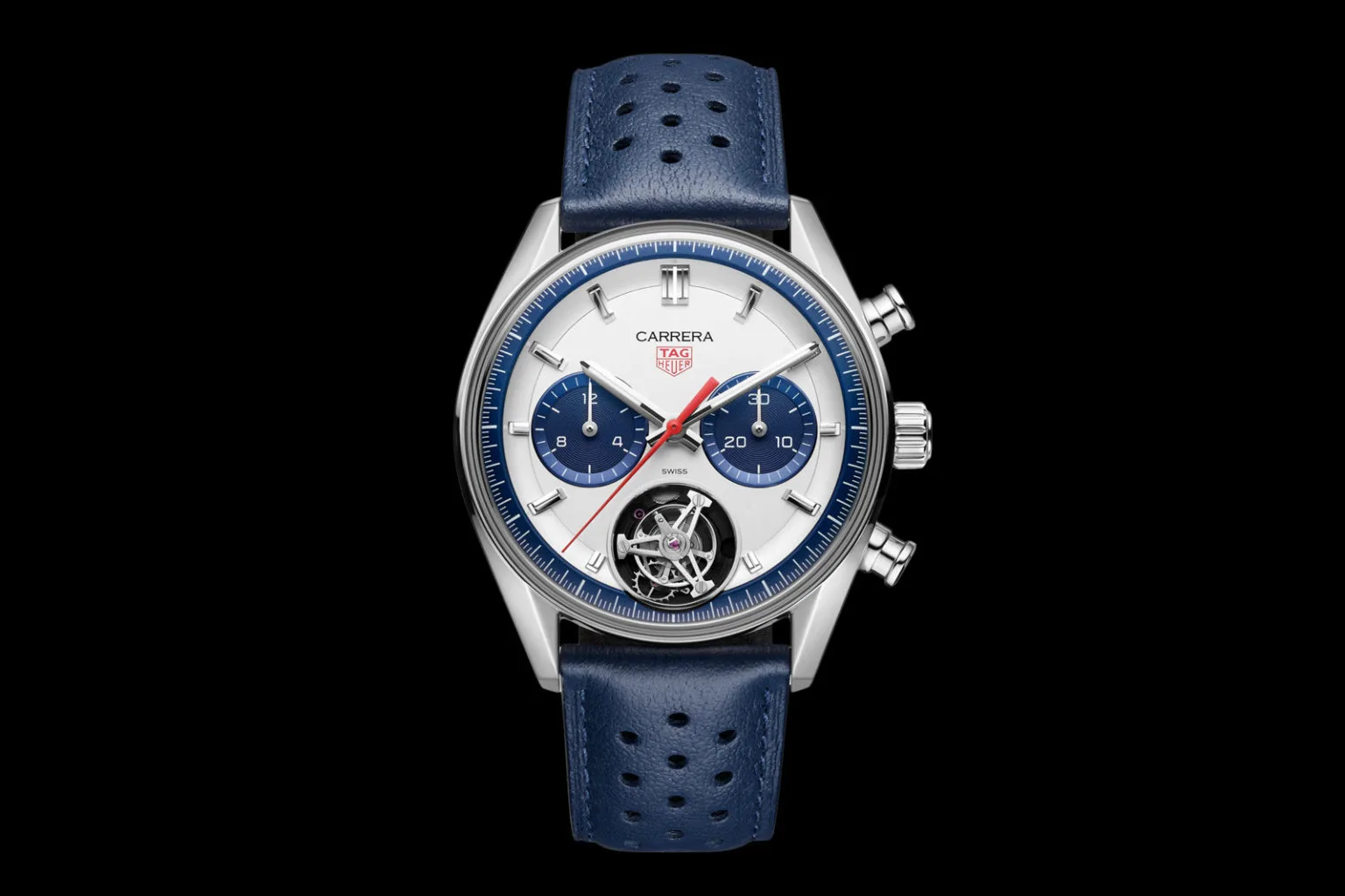 This limited-edition watch, capped at just 50 pieces, comes with a blue perforated leather strap. Priced at €25,200, the Carrera “Blue Panda” is available exclusively in Europe.