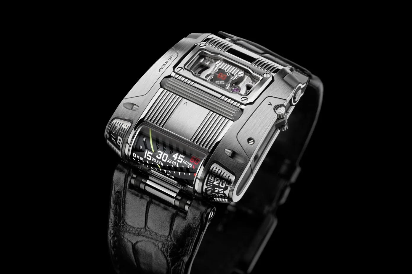 URWERK has been using the unique wandering hours for 20 years inspired by an archaic way of presenting time. However, the brand briefly introduced the linear and retrograde indications on the iconic UR-CC1 King Cobra. The watch indicates the hours by a jumping and rotating cylinder, the minutes with a retrograde cylinder and the seconds with both a digital and linear mechanism. To me this is cooler and easier to read.