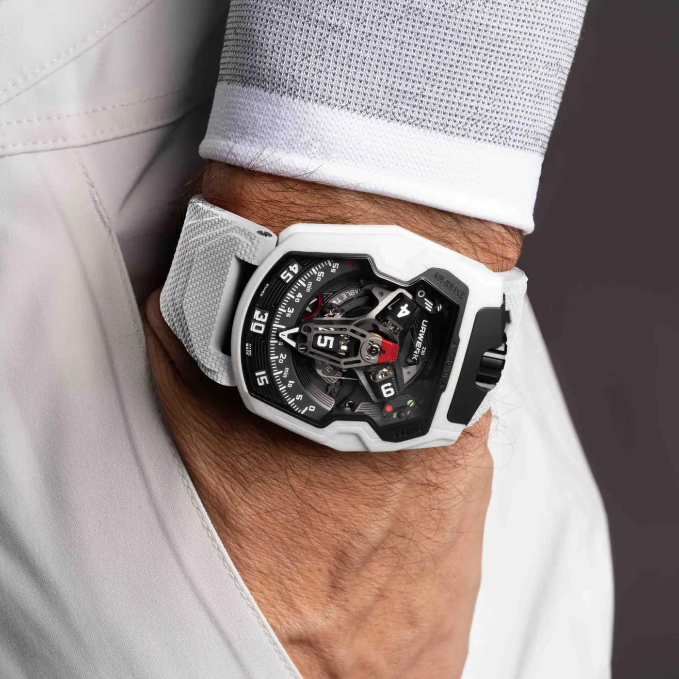 The UR-230 Polaris is paired with a white vulcanized rubber strap featuring a velcro closure and a cut-out for the crown. Limited to 35 pieces, it retails for CHF 150,000 (approx. USD $170,000).