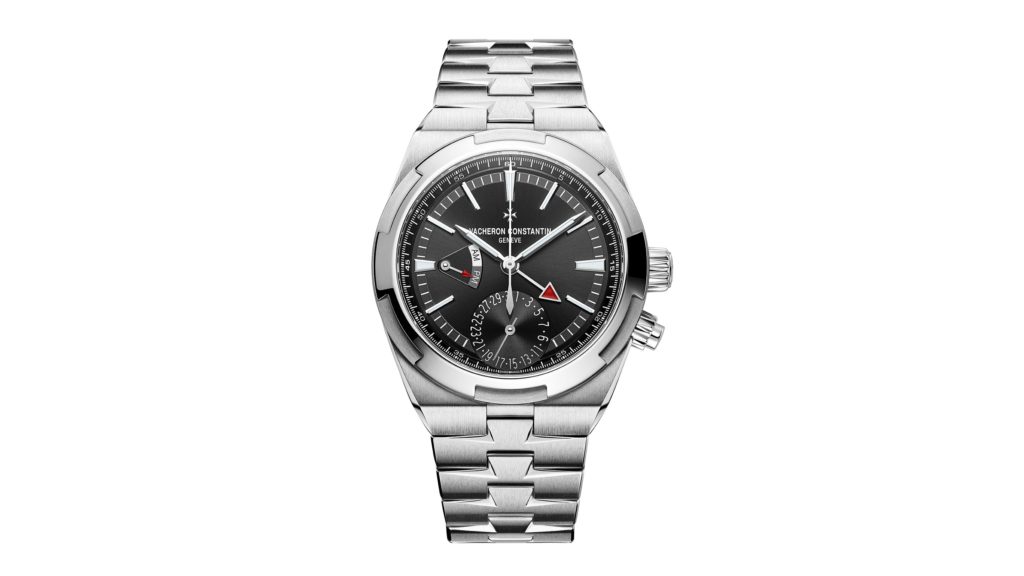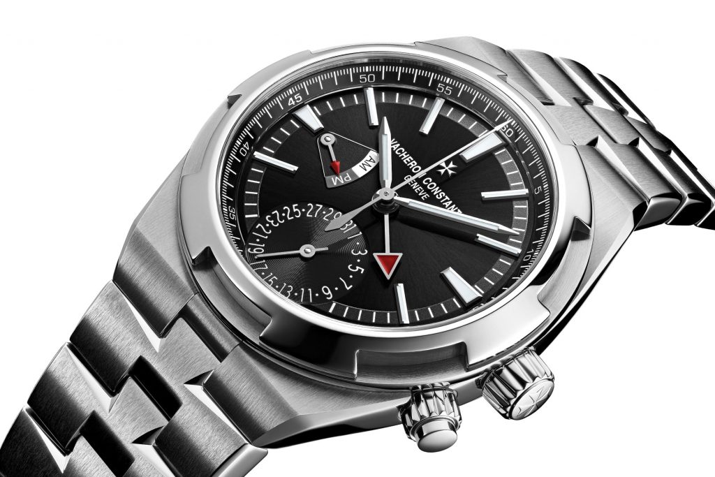 In a world where experimenting with color seems to be gaining a steady pace, Vacheron Constantin has chosen to stick to a more traditional approach. Presented in a deep shade of black the dial on the new Vacheron Constantin Overseas Dual Time Black looks classy and complements the steel exterior. It has a nice sunburst finish to it that adds to the visual dynamism of the dial and should also result in some nice light play. The layout remains unchanged Barring a few cosmetic upgrades. You still have the beautifully polished applied faceted hour markers, a dual minute chapter ring for easy tracking of time, a day/night indicator at 9, a nicely recessed circular date sub-dial at 6 and a nicely proportioned slender handset. But what makes this one stand out are those red highlights on the GMT hand and the AM/PM indicator. This little splash of color goes a long way in elevating the visual appeal of this watch.