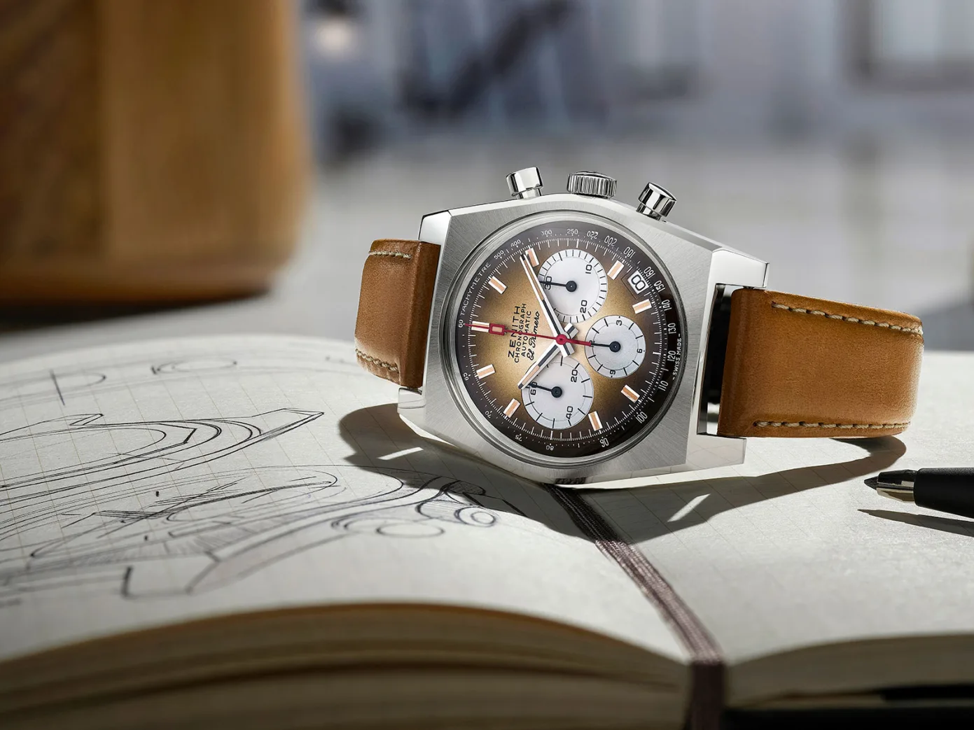 The A385 Revival follows in the footsteps of the previously released A386 and A384 once again showcases Zenith’s capability of successfully pulling off a modern watch with strong vintage design sensibilities. The star of the show here is the brown gradient dial that looks almost identical to the one found on the original reference. Starting from a beige center, culminating into an almost dark brown color towards the outer edges, this a dial that is guaranteed to provide the wearer a visually immersive experience for a long time to come. The layout remains familiar with a white tri-register setup, applied rectangular indices, baton-style hands, a neatly executed date window between 4 and 5, and a tachymeter scale on the outer periphery. To complement the brown tones of the dial, Zenith has made use of cream-colored luminescent material on the hands and the indices.