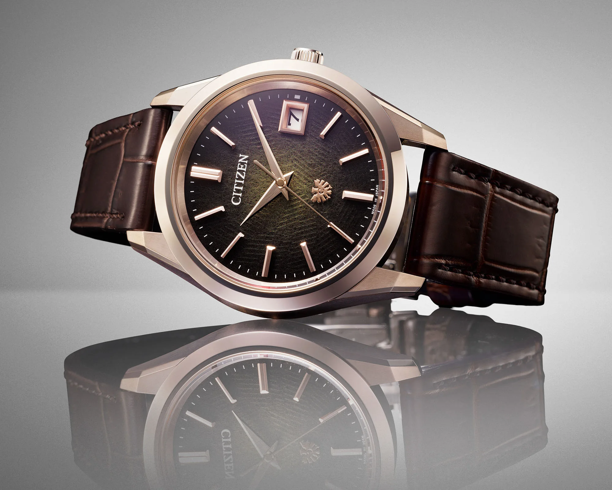 The applied markers, date window, applied ‘The Citizen’ eagle logo and brushed/polished dauphine hands are colour-matched to their cases. Speaking of which, both watches come with a case made of Citizen’s proprietary “Super Titanium” alloy, Citizen says it’s 40% lighter than stainless steel and five times as hard. AQ4106-00W comes with a Sakura Pink Duratect gold coating for a rose-gold finish, while AQ-4100-22W gets a platinum Duratect finish. The water resistance of both models is 100m and the watches come with classy leather straps.