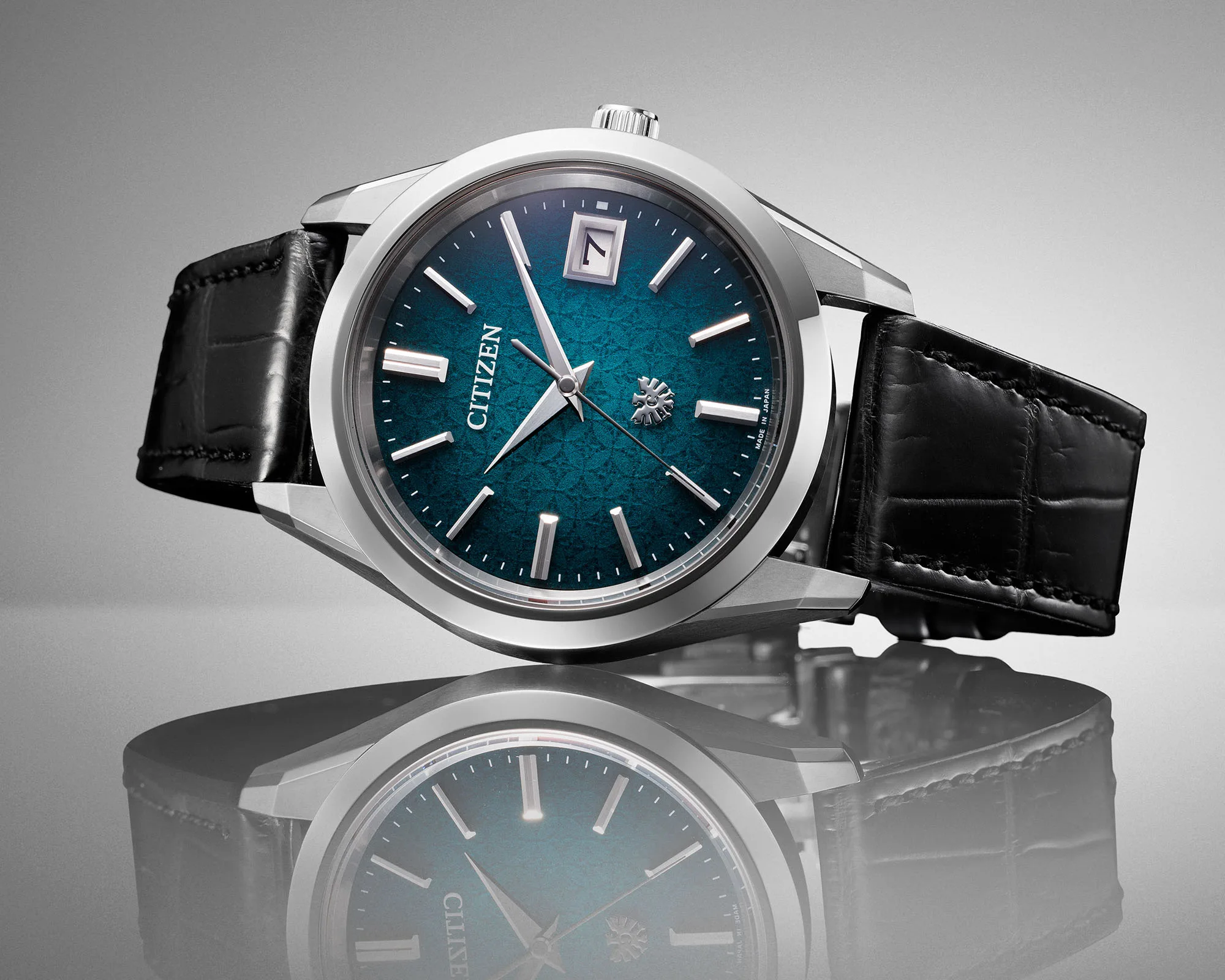 The paper dials of both watches are made from the fibres of three plants: Oriental paperbush (mitsumata, or edgworthia chrysantha), Ganpi (or Gampi, a member of the Wikstroemia family) and Paper mulberry (kōzo, or broussonetia papyrifera), this paper is extremely thin and allows light to get through the dial – more on that later. Both watches have dials with a unique theme on them, reference AQ4106-00W receives a warm brown dial with a pattern of lines meant to symbolise an eagle in flight, I suspect it’s specifically inspired by the ‘The Citizen’ applied logo below the hands. Reference AQ-4100-22W has a teal dial with a motif in a cloisonné style, that is, multiple overlapping circles which is very reminiscent of flowers, it reminds me of elegant ceramic tiles personally. Both watches come with a three-handed layout with applied markers and a date window. Strangely, I don’t mind that the date window’s backdrop hasn’t been colour-matched to the dials so much on these watches; the large frame around the cutout makes the date window a feature.