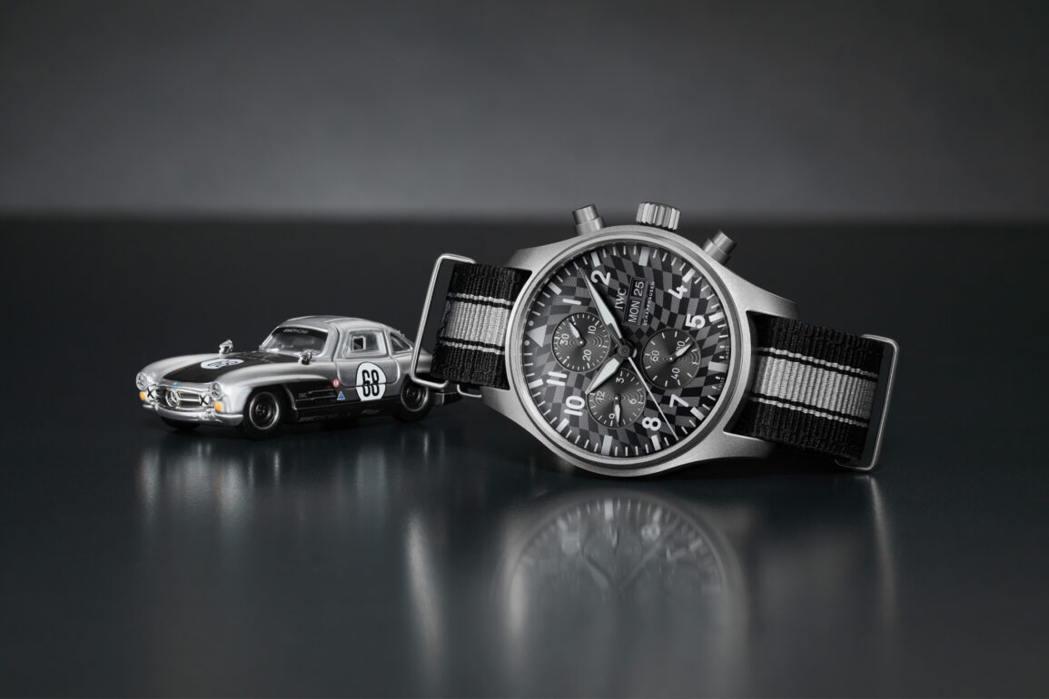 The Hot Wheels model is based on a 1955 Mercedes-Benz 300 SL Gullwing, one of the most desirable cars from the period (these things are easily worth over $1m in good condition. The car was used to mark a post-Covid return to normal as it appeared at the 78th Goodwood Members’ Meeting, which took place last weekend. Mercedes-Benz (owned by Daimler) made the car, Hot Wheels (owned by Mattel) made the model and IWC (owned by Richemont) made the watch. How poetic.