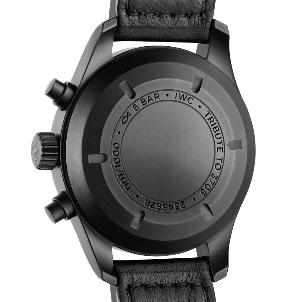 Around the back is a solid caseback with some minimalist scripting on it, underneath which sits the calibre 69380, a member of the in-house made 69000 series of movements introduced in 2018. It features IWC’s pawl winding system, which makes winding more efficient, allowing the rotor to power the mainspring, which provides 48-hours of power reserve. It also has a 4Hz beat rate and a column-wheel for the chronograph, making it vastly superior to the Valjoux 7750 found in the original.
