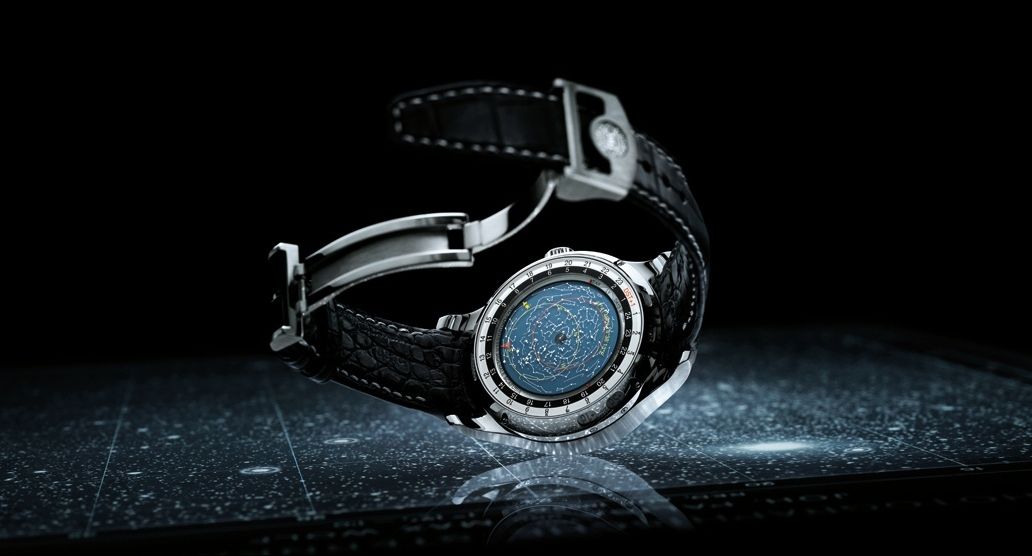 The seconds are displayed on a huge constant-force tourbillon at 9 o’ clock which occupies a quarter of the dial and the solar time is displayed in the traditional style. Unlike other watches the Sidérale Scafusia has two displays, one that displays time and the other on the flip side displaying an astronomical chart of the day and night sky that change throughout the day.