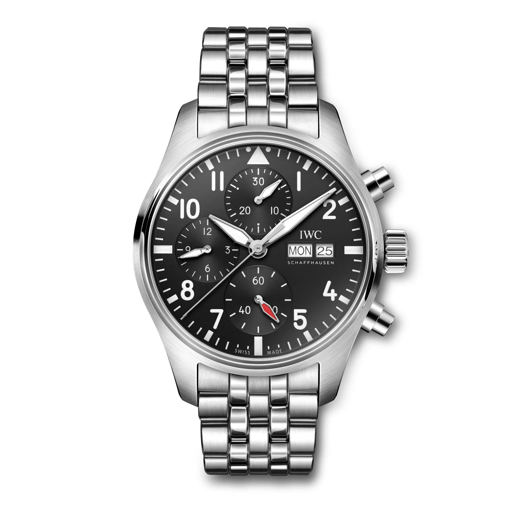 I don’t feel that I need to wax lyrical about the dial of the Pilot’s Watch; nothing’s changed compared to the other ones. It still has a chronograph in the 6-9-12 layout, making space for a day and date window. Plenty of lume and contrast means the watch is easy to read come night or day.