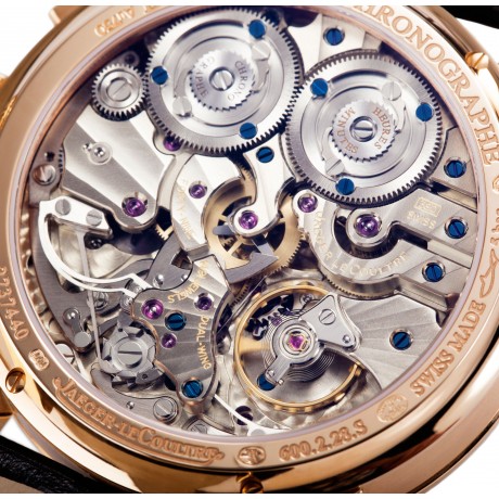 The Jaeger-LeCoultre Duomètre à Chronograph has dual wing calibre movement again with two power reserves one for the passing and time and the other for timekeeping functions. Compared to the last piece this watch keeps it movement hidden on the front of the dial, but it does boast a completely open case back. This particular piece is secured by a brown alligator leather strap and is constructed with 49 jewels and 390 pieces.