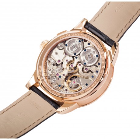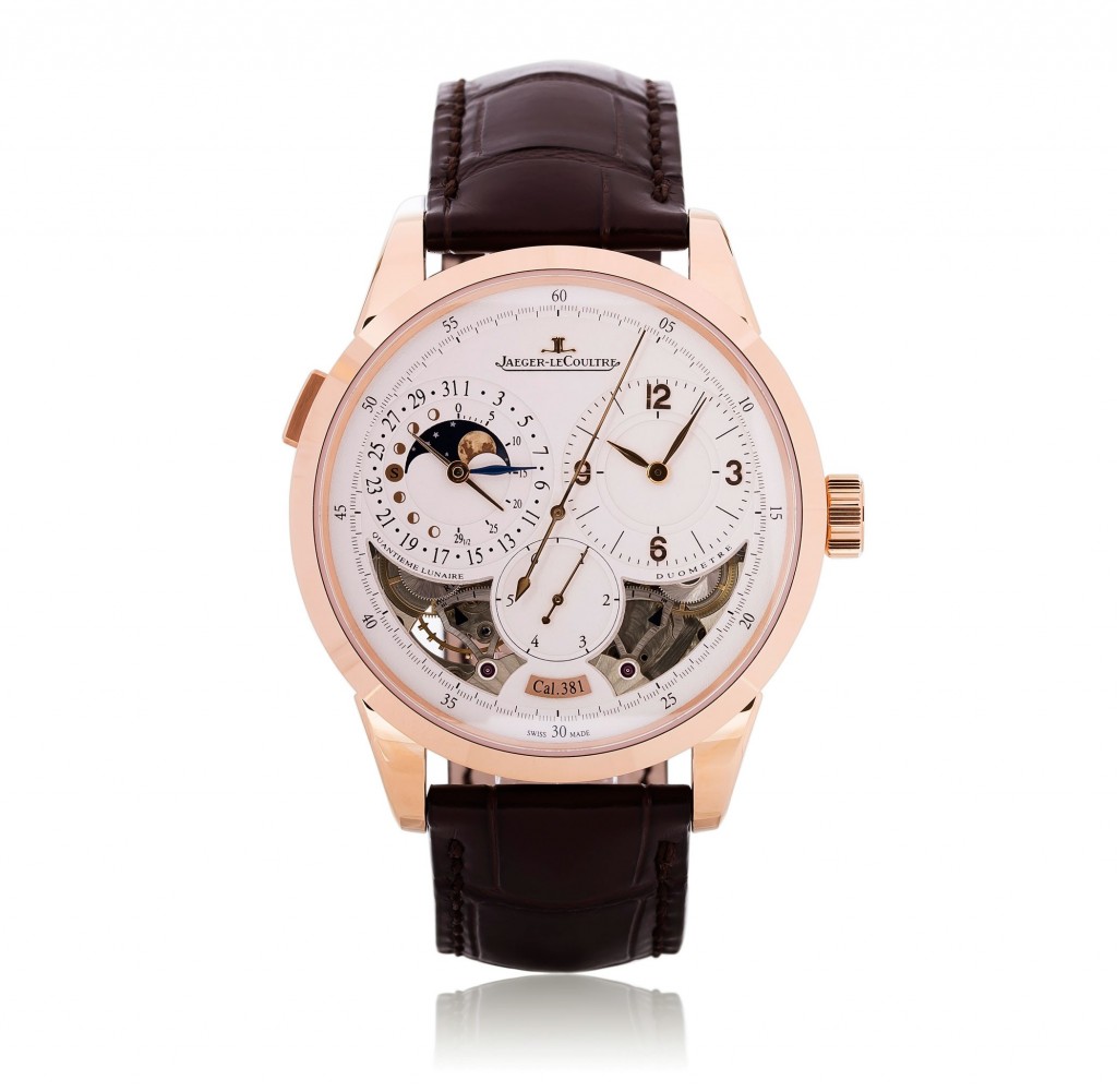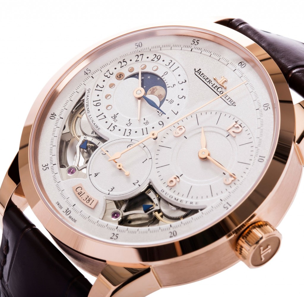 The Jaeger-LeCoultre Duomètre à Quantième Lunaire is a timepiece which displays just what length the brand goes to creating a high quality watch. This particular piece has two independent power reserves, one for the exact passing of time and the other for the timekeeping functions such as chronograph and moon phase. The watch includes exhibition windows on the front dial as well a full open case back displaying the details of the fine movement. A collaboration of 40 jewels and 369 pieces creates such a vision of beauty.