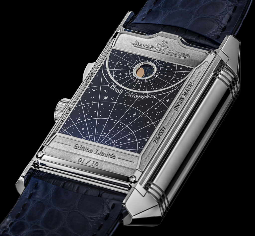 This is the most complicated Reverso model Jaeger-LeCoultre has ever made, and it has four dials and eleven complications. For comparison, the previous most complex Reverso, the Reverso Grande Complication à Triptyque, had three dials and eight complications, making it relatively pedestrian compared to this.