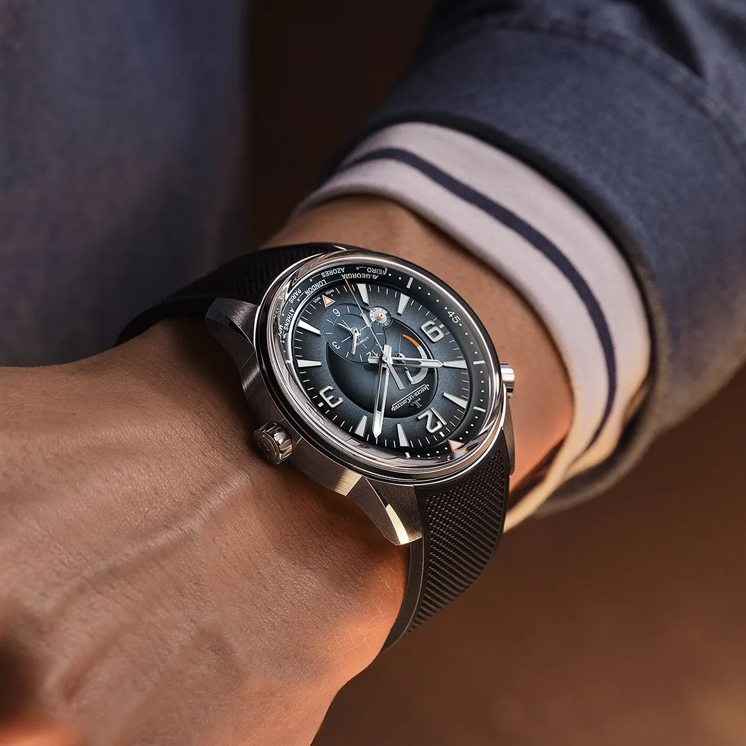 Powering the watch is the in-house JLC Caliber 939, an automatic movement with 295 components, a frequency of 28,800vph, and a 70-hour power reserve. The watch comes with two interchangeable straps and folding buckles; one in textured black rubber and another in blue-gray canvas. It is priced at EUR 17,400/CHF 15,400.